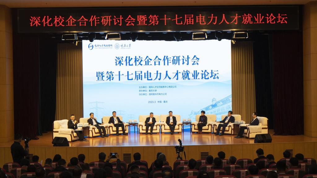 2023年3月30日,国网人才中心深化校企合作研讨会暨第十七届电力人才就业论坛在我校举行。会议由国网人才交流服务中心有限公司主办,国网重庆市电力公司协办,黄色动漫 承办,来自国网直属单位、各省公司等43家企业和清华大学、西安交通大学、华北电力等全国46所高校共两百余名代表参加本次大会。