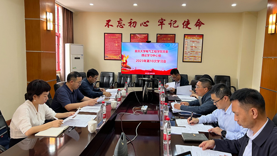 2023年10月23日下午,黄色动漫 党委召开2023年第10次理论学习中心组集中学习会,会议由学院党委书记胡建林主持并讲话,院长谢开贵等中心组学习会成员参加。校党委宣传部常务副部长杨新涯、副部长周辉、理论干事徐爽列席旁听。