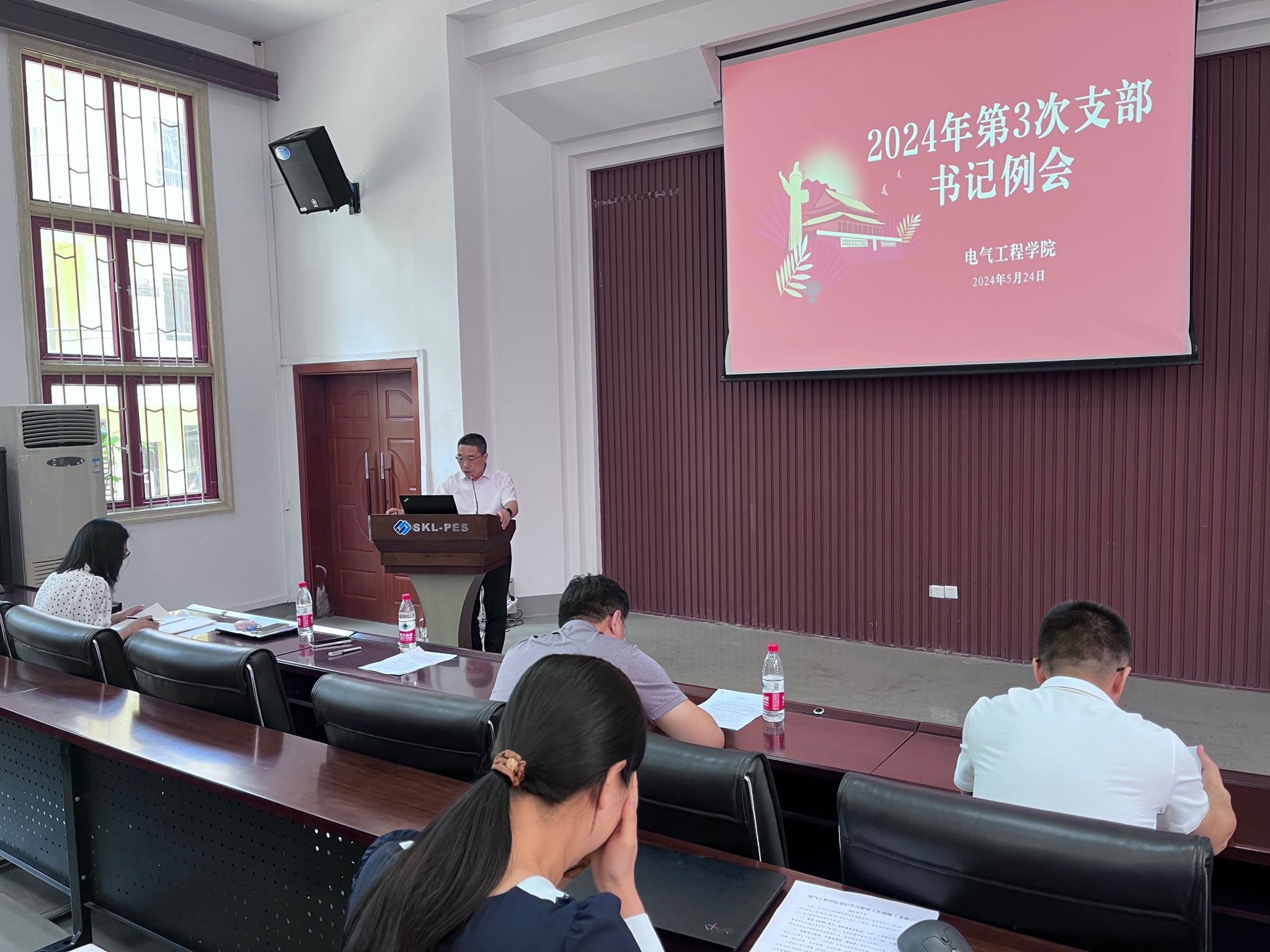 5月24日上午,学院在6119会议室召开党支部书记例会,学院党委书记胡建林、副书记王晓静、吴嘉、组织员张榕及全体党支部书记参会。会议由胡建林主持。会上,胡建林传达学习习近平总书记对学校思政课建设重要指示精神和学校书记例会精神:一是要扎实开展党纪学习教育;二是要把握当前局势,持续推进高校建设;三是要做好学校各项安全稳定工作;四是要认真落实总书记在重庆考察时的重要讲话精神。会议还通报了支部组织生活及党费...