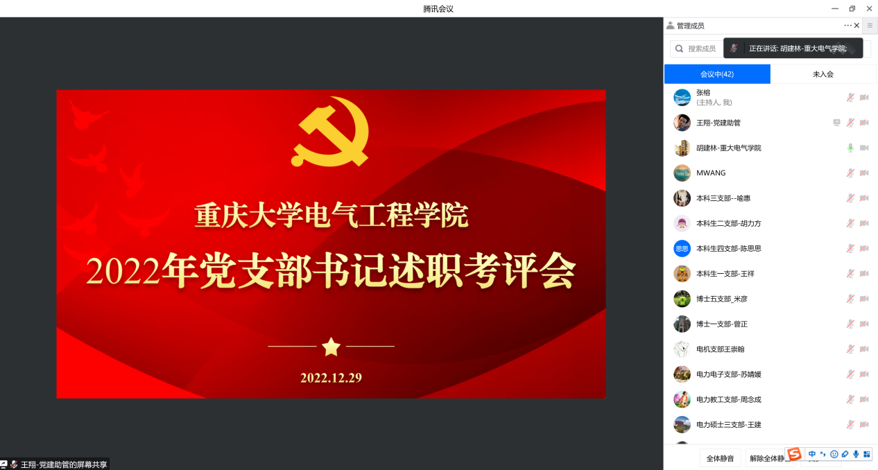 为深入学习贯彻落实党的二十大精神,进一步压实党支部书记履行基层党建“第一责任人”责任,切实提高学院基层党支部标准化建设水平,按照学校党委组织部的通知要求,2022年12月29日下午,黄色动漫 党委线上召开2022年党支部书记述职评议考核会,学院党委书记胡建林书记主持会议,学院党委委员、党政班子成员及全体党支部书记参会。学院31个党支部书记围绕学习贯彻落实习近平新时代中国特色社会主义思想和党的二十...