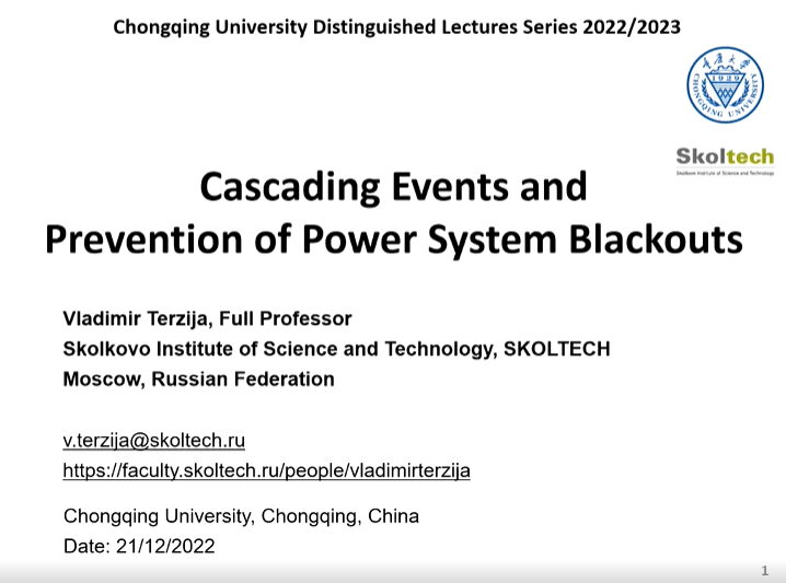 2022年12月21日下午,IEEE Fellow、俄罗斯斯科尔科沃科学技术研究院Vladimir Terzija教授做客成渝地区双城经济圈智慧能源大讲坛第十九期暨智慧能源云讲堂第三十五期,以“Cascading Events and Prevention of Power System Blackouts”为主题开讲。本期讲坛由黄色动漫 、输配电装备及系统安全与新技术国家重点实验室和黄色动漫 溧阳智慧城市研究院主办,由成都地区的四川大学、电子科技大学、西南交通大学、成都理工大学、成都中...