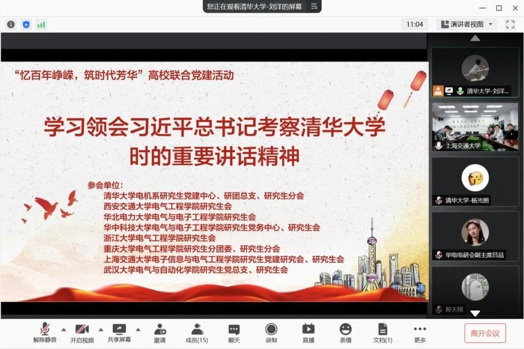 On the morning of April 23rd, eight postgraduate organizations from universities and schools jointly initiated an work communication activity. Leaders of these university organizations gathered online to learn and understand the spirit of the important speech made by General Secretary Xi Jinping during his visit in Tsinghua University.
