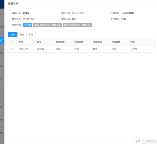 自动发布:点击自动发布,系统对已录入学生成绩的课程进行发布。
