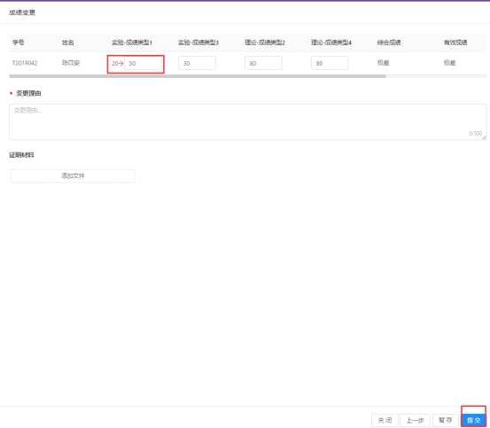 成绩变更页面