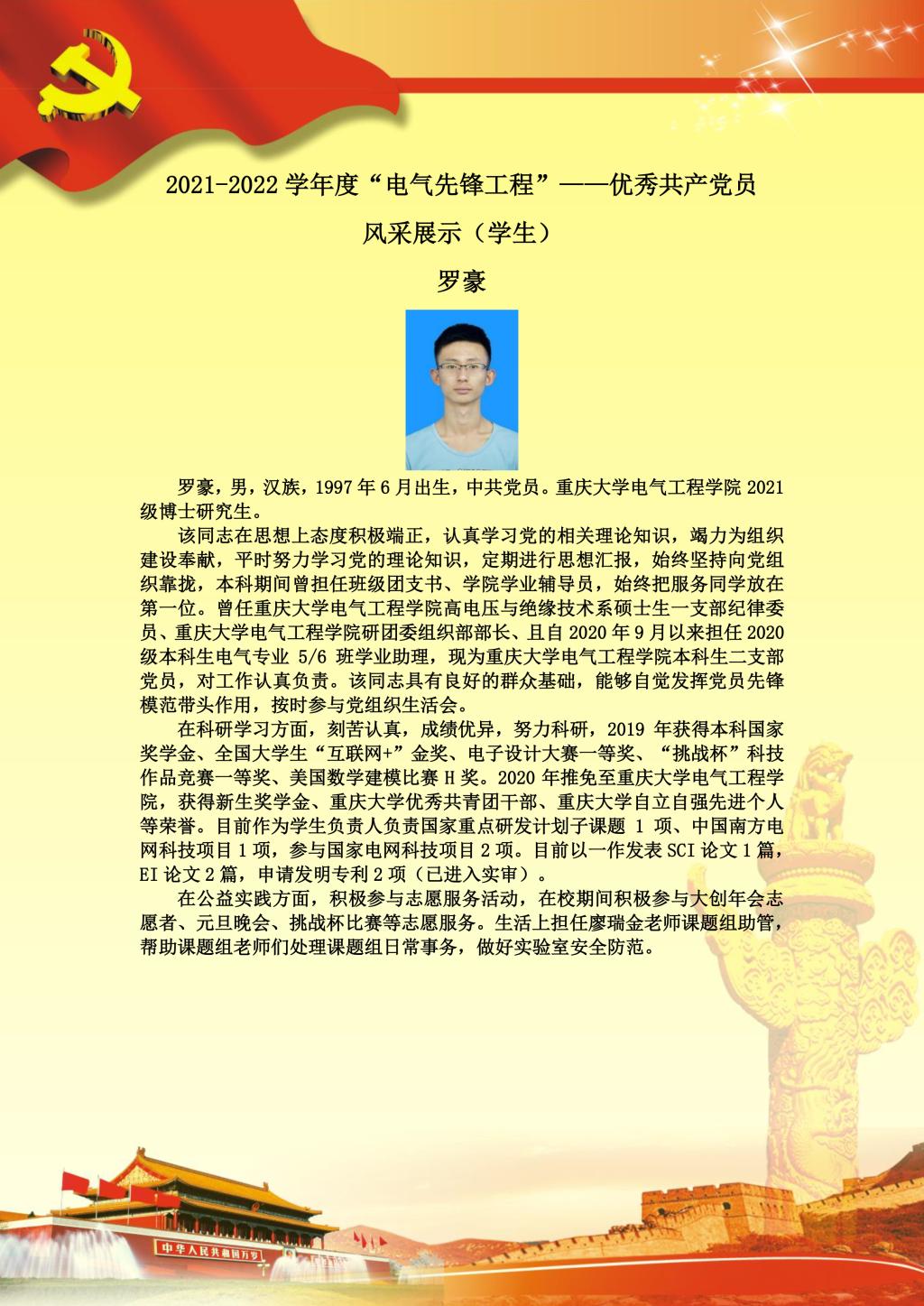 【党员风采】本科生二支部罗豪