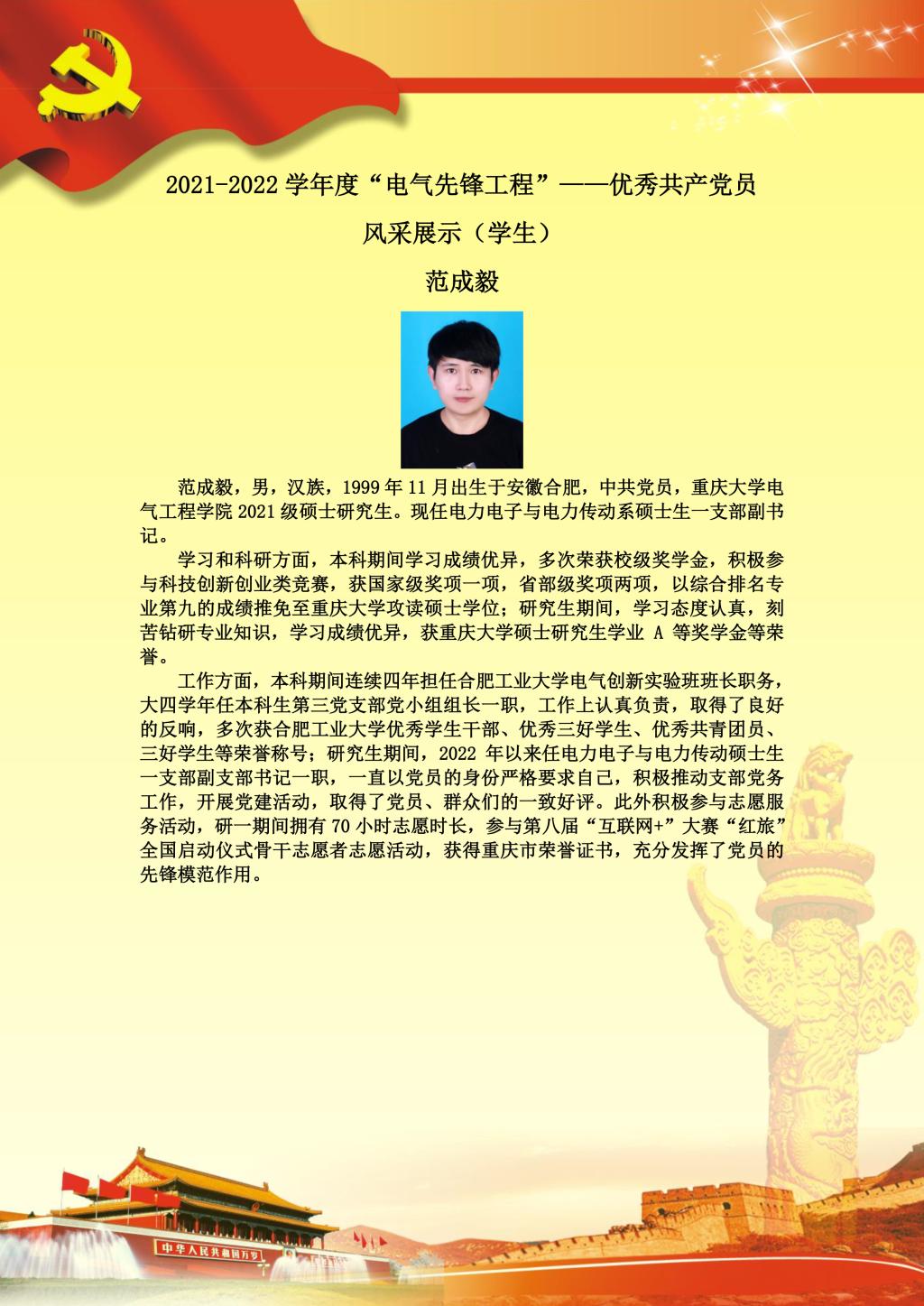 【党员风采】电力电子与电力传动系硕士生一支部范成毅