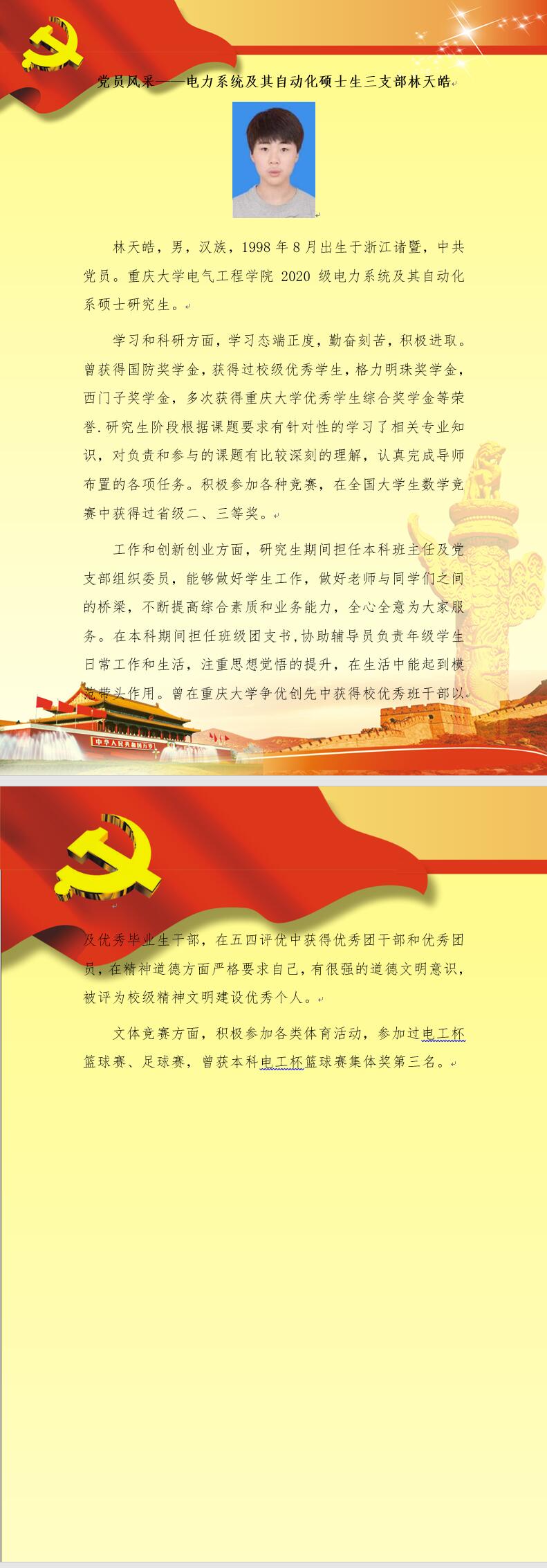 【党员风采】电力系统及其自动化硕士生三支部林天皓
