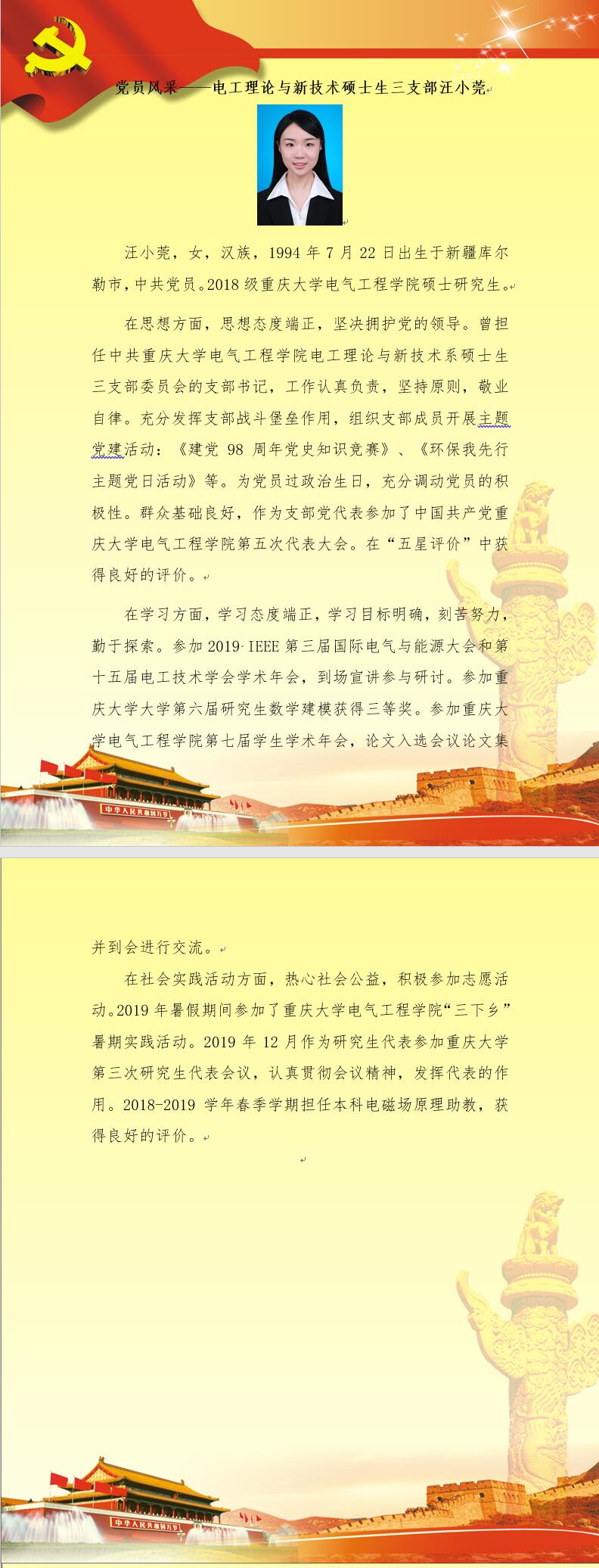 【党员风采】电工理论与新技术硕士生三支部汪小莞