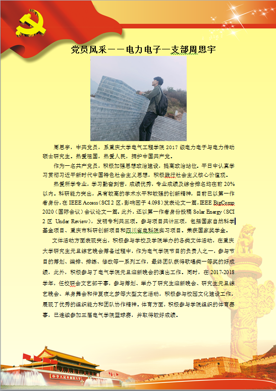 【党员风采】电力电子一支部周思宇