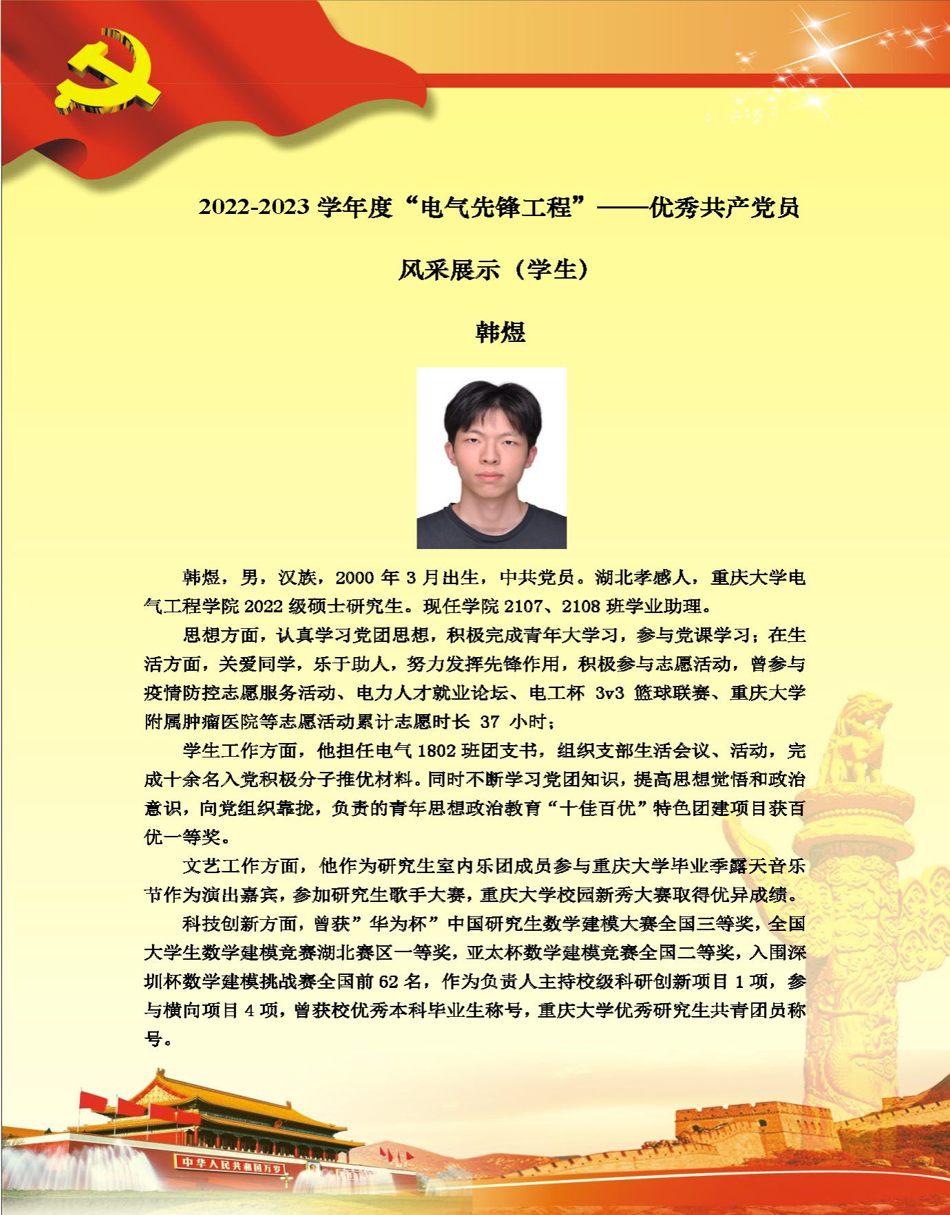【党员风采】电力系统及其自动化系硕士生一支部韩煜