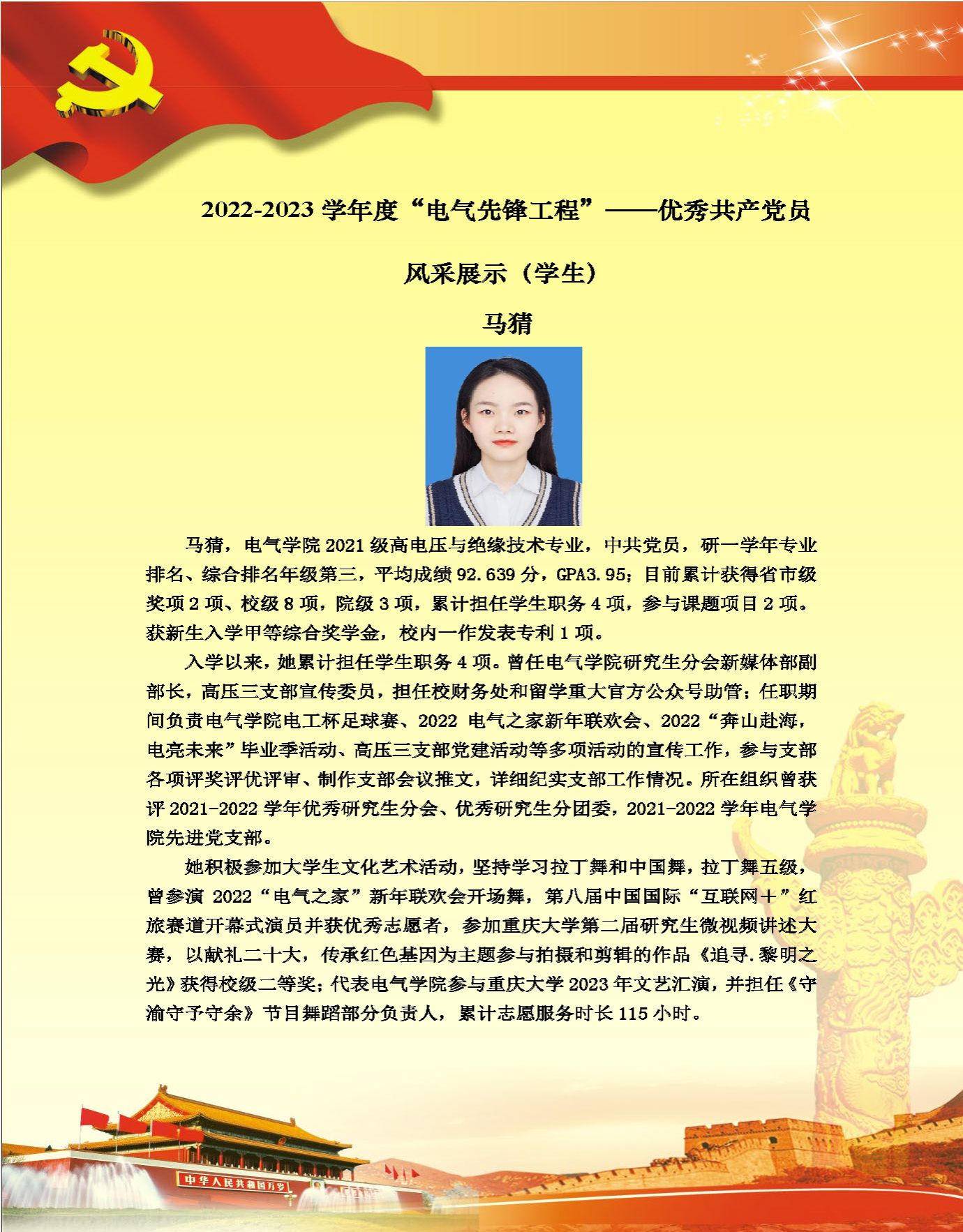 【党员风采】高电压与绝缘技术系硕士生三支部马猜