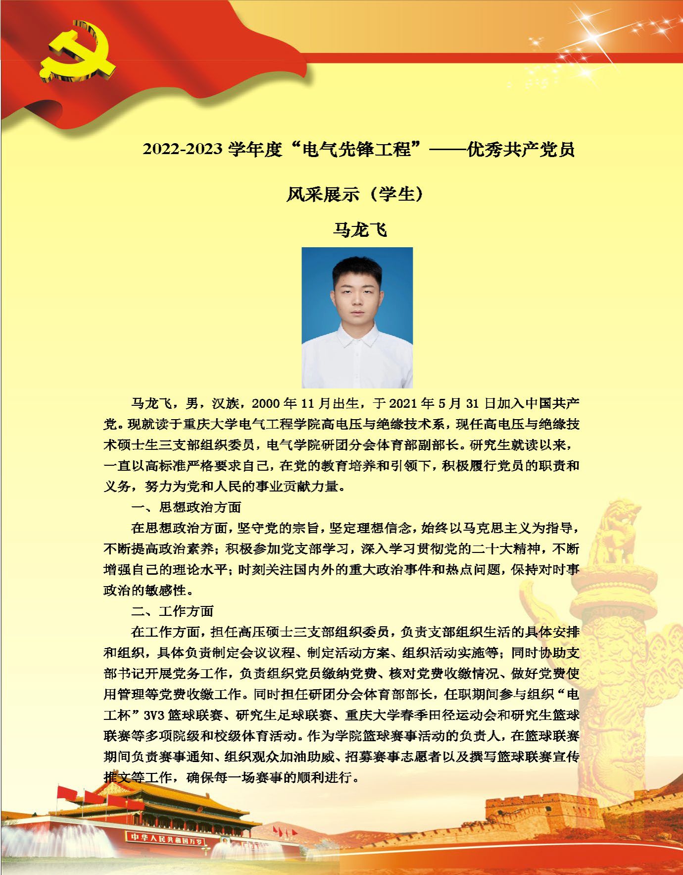 【党员风采】高电压与绝缘技术系硕士生三支部马龙飞
