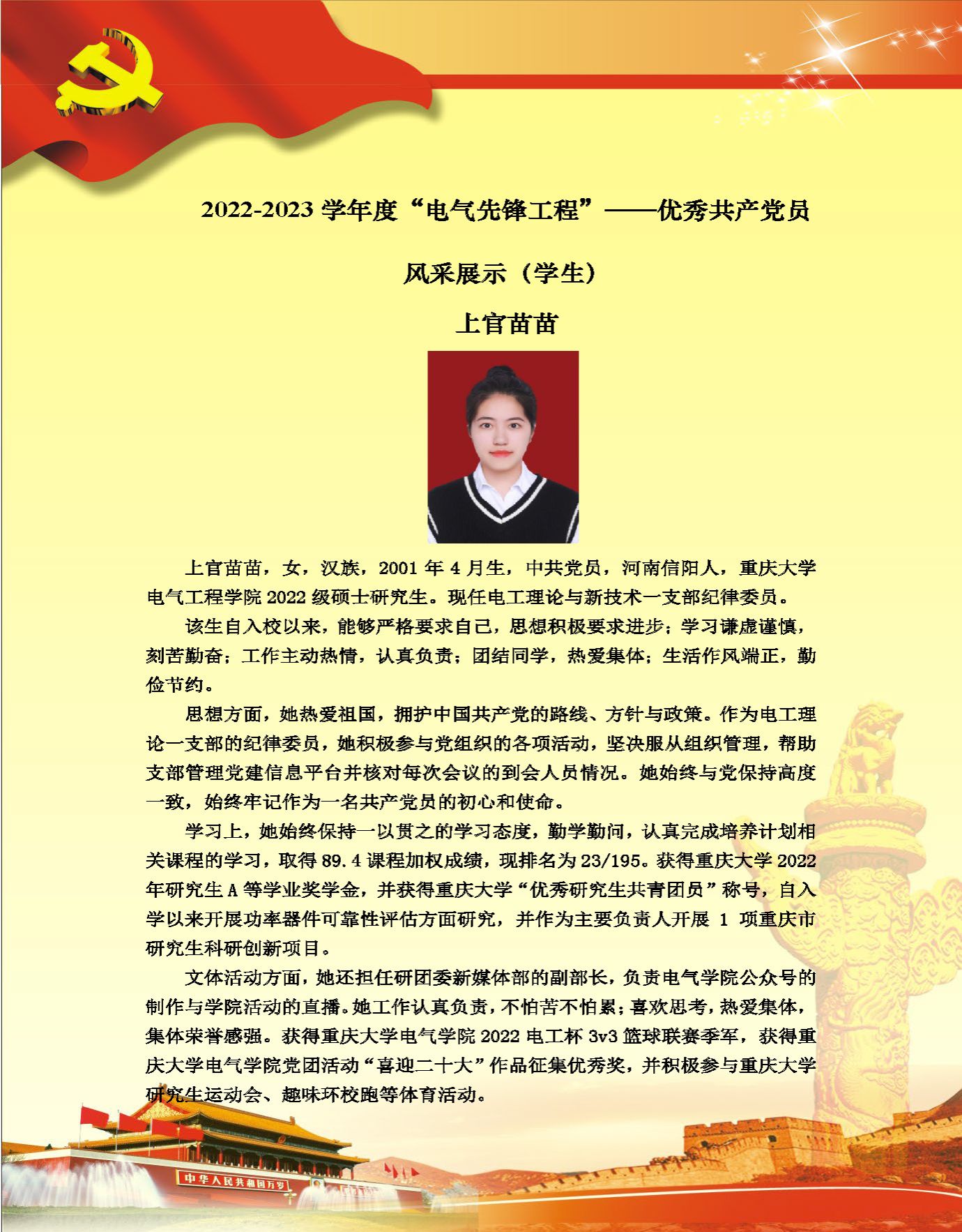 【党员风采】电工理论与新技术系硕士生一支部上官苗苗