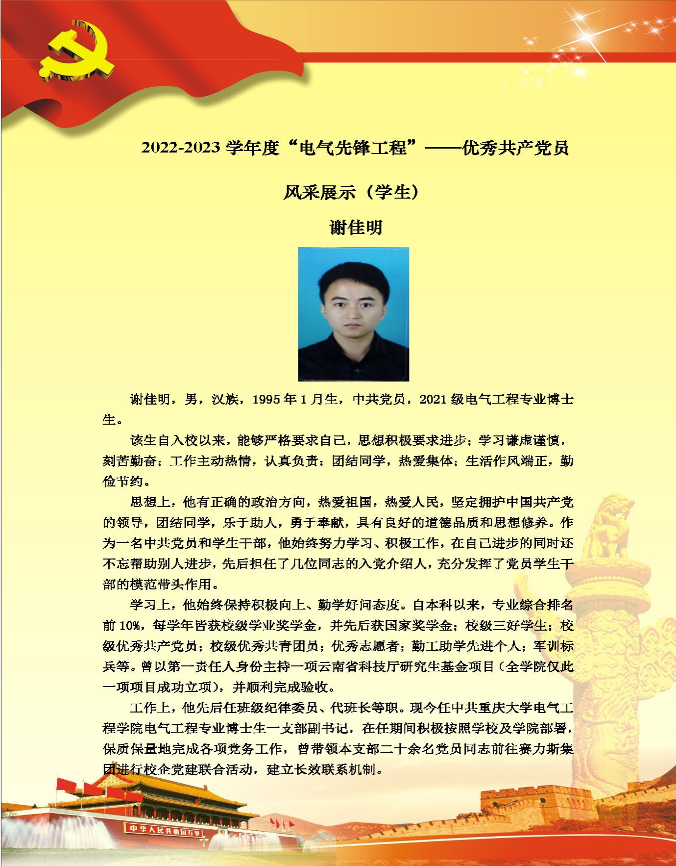 【党员风采】电工理论与新技术系硕士生二支部吴宇豪