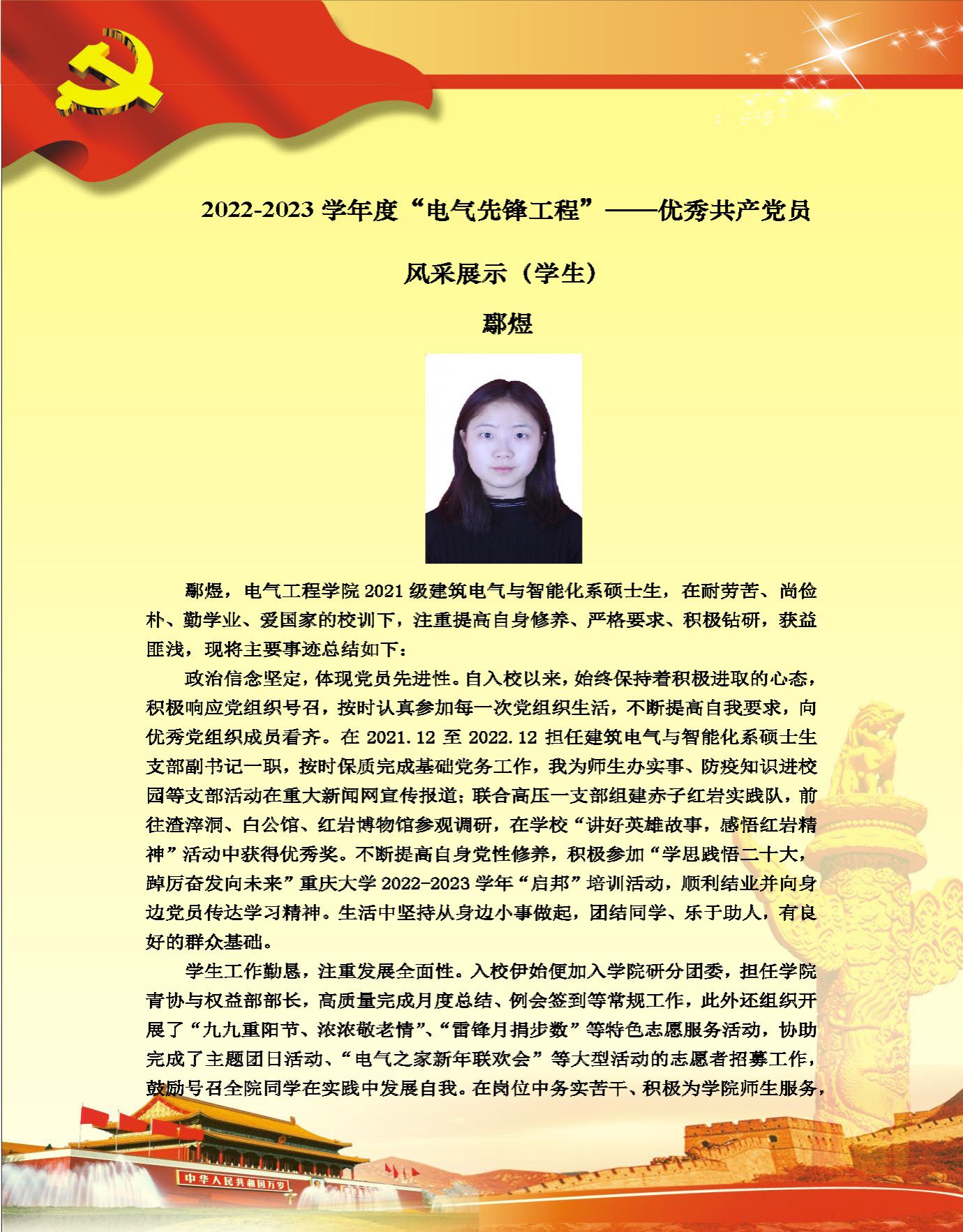 【党员风采】建筑电气与智能化系硕士生支部鄢煜
