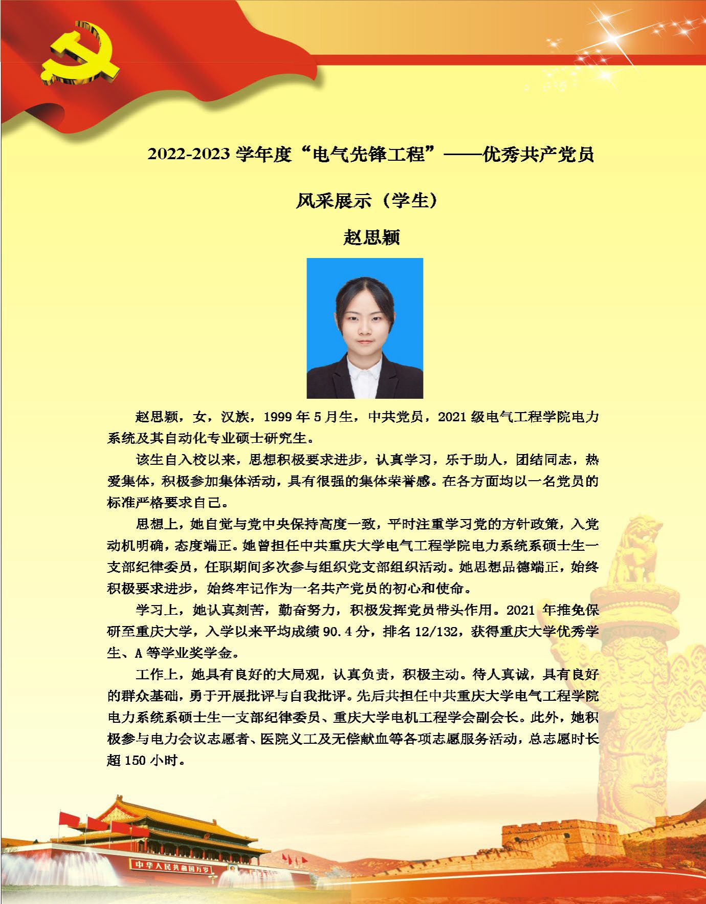 【党员风采】电力系统及其自动化系硕士生一支部赵思颖