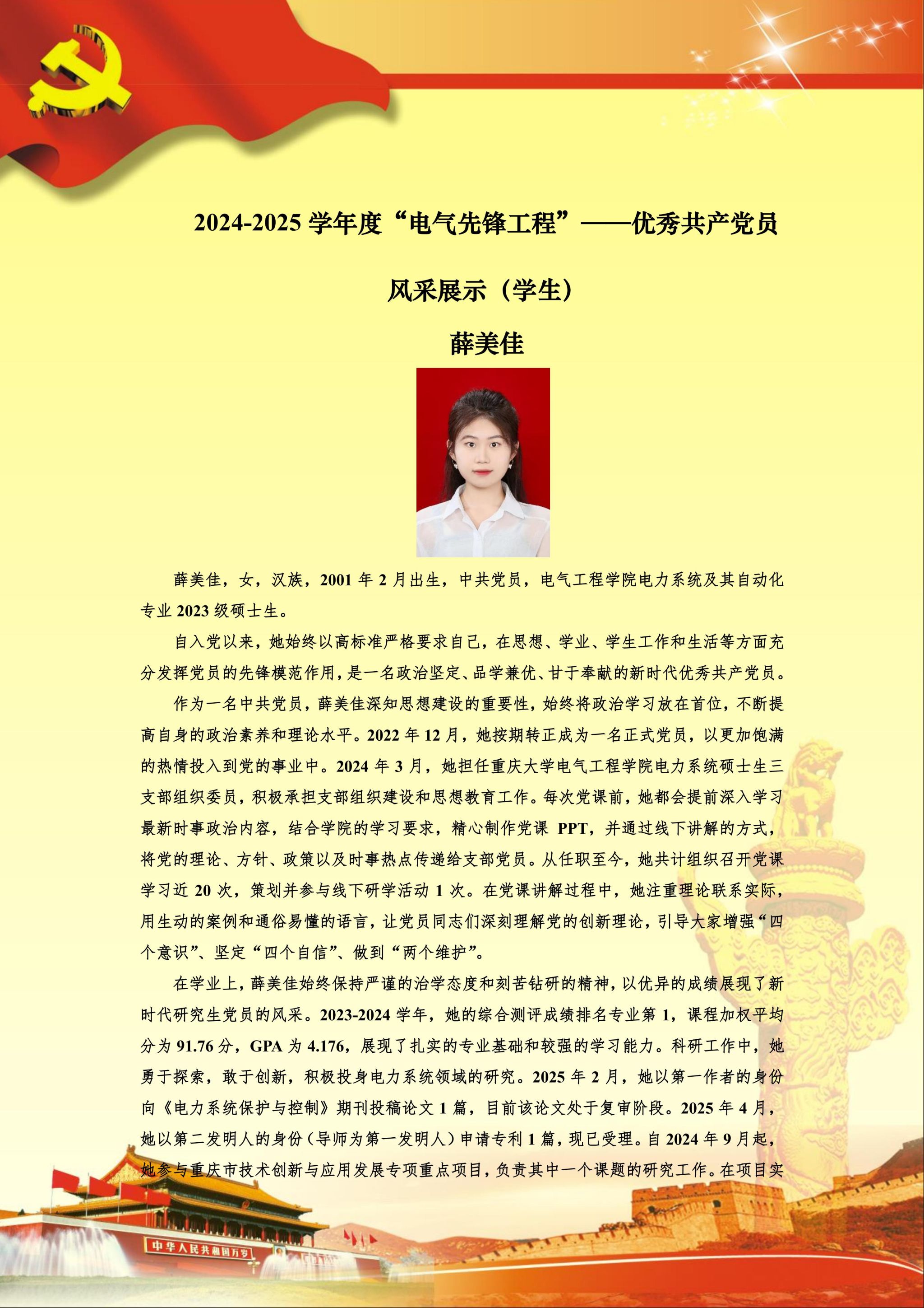 【党员风采】电力系统及其自动化硕士生三支部薛美佳