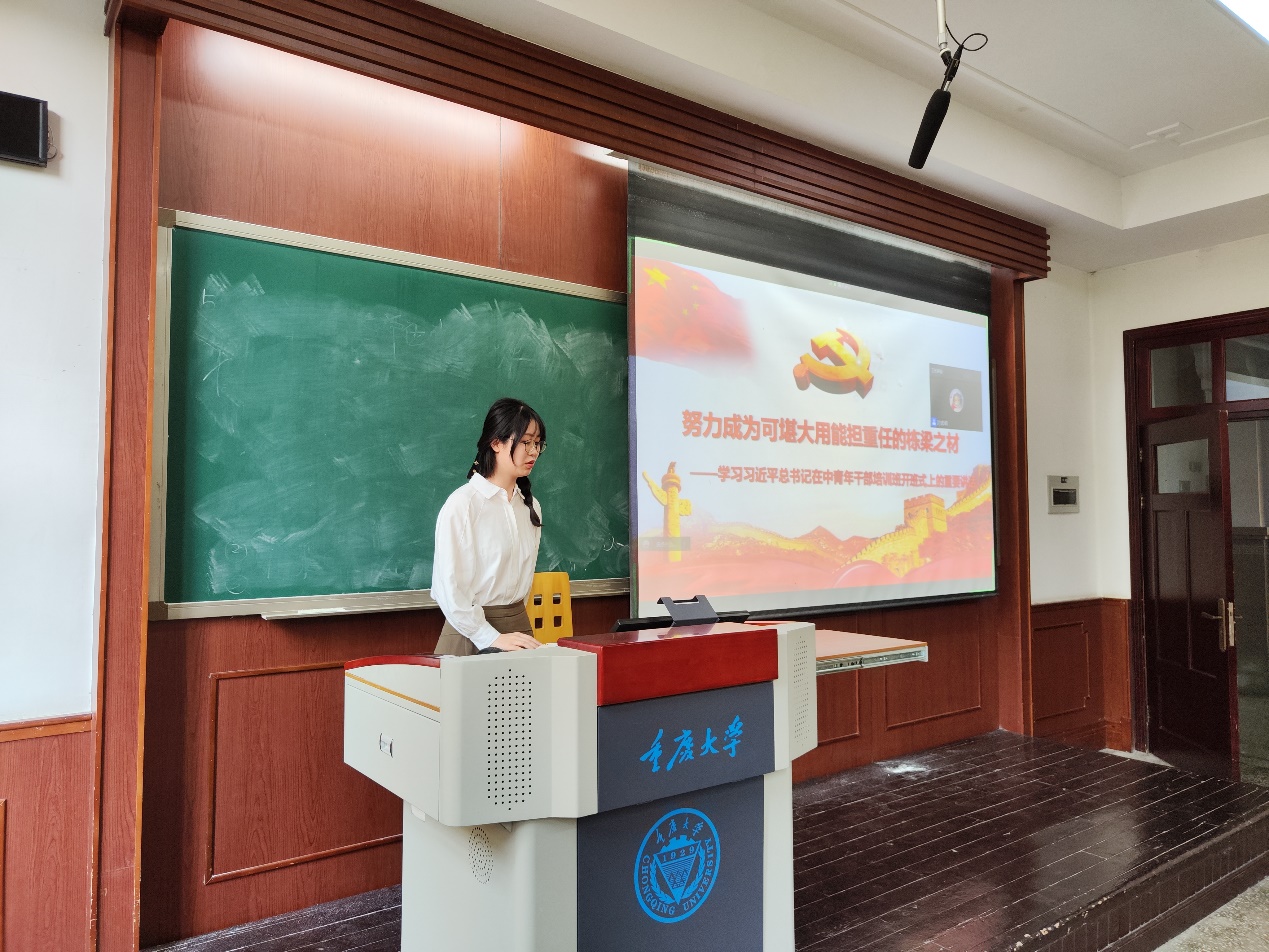马竹欣同志带领大家学习了习近平总书记2021年9月在中青年干部培训班开班式上的重要讲话《信念坚定 对党忠诚 实事求是 担当作为,努力成为可堪大用能担重任的栋梁之才》,在大会上,习近平总书记为中青年干部提出了六点要求,信念坚定、对党忠诚;注重实际、实事求是;勇于担当、善于作为;坚持原则、敢于斗争;严守规矩、不逾底线;勤学苦练、增强本领。习近平总书记强调,这些都是年轻干部健康成长要解决好的课题。大家生逢伟大时代,是党和国家事业发展的生力军,要练好内功、提升修养、增强本领,不要走偏、不要落伍、不要掉队,努力成为可堪大用、能担重任的栋梁之才,为实现第二个百年奋斗目标而努力工作,不辜负党和人民期望和重托!