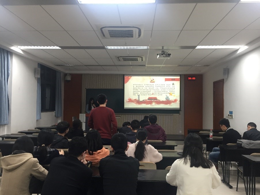 电力系统硕士第二、三支部于A8101教室开展了以“不忘初心、牢记使命——聚焦党的十九大”为主题的党日活动。本次活动由赵晓焱同志主持,二、三支部正式党员和预备党员积极参加了此次党日活动。