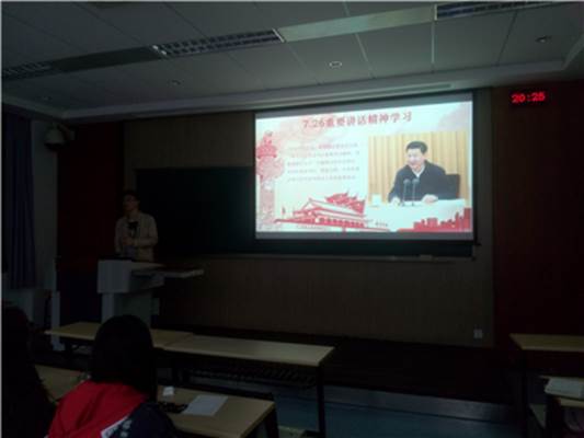 A区八教214召开支部会议。本次会议由蔡彪同志主持,围绕主题“学习726讲话精神,迎接党的十九大”开展学习讨论。