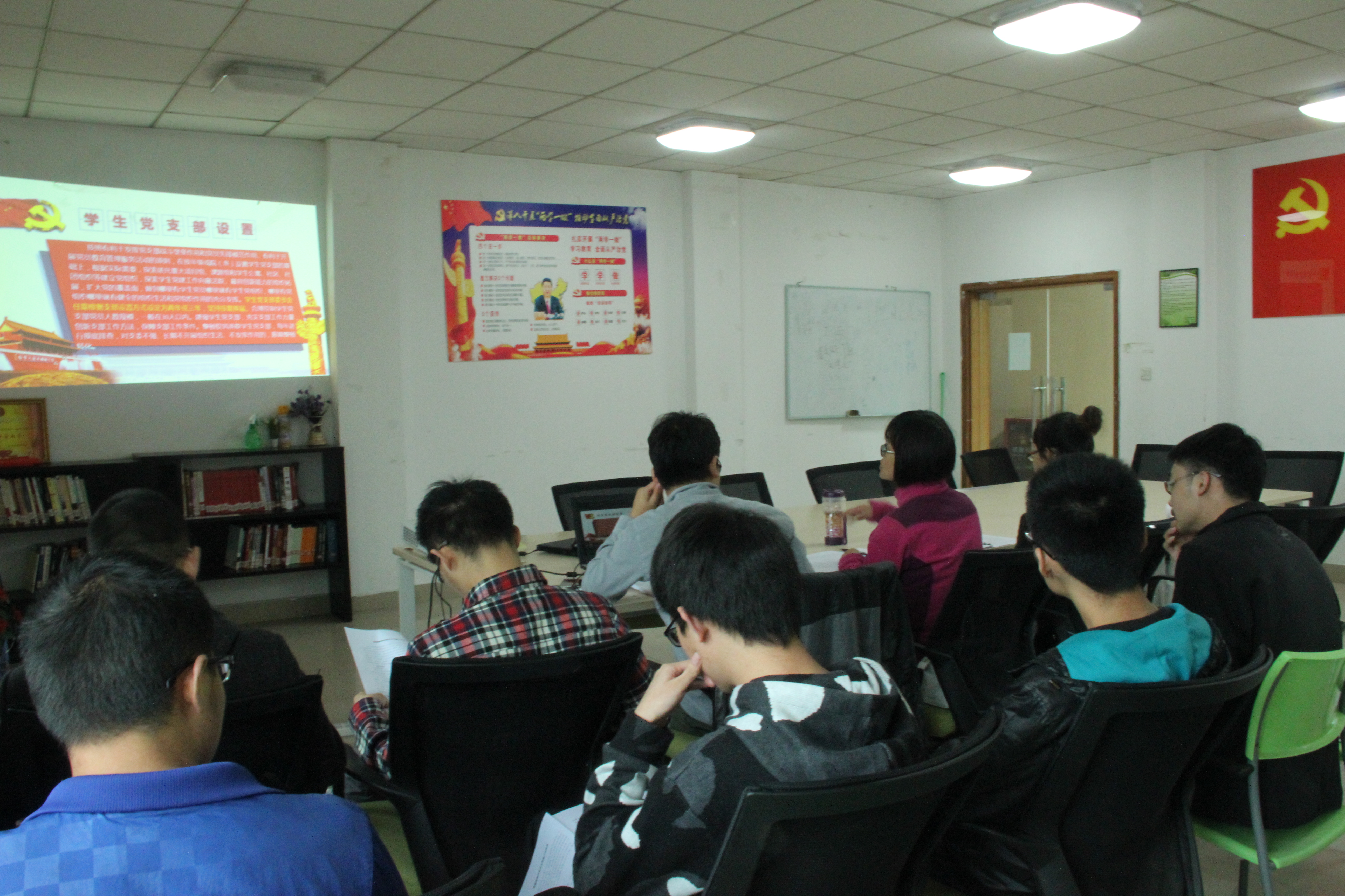 活动伊始,魏世勋同学带领着大家阅读相关文件,分别从组织领导、教育培养、发展党员等六个方面对文件进行了简单介绍。在这过程中,2015级辅导员罗敏老师就“一岗双责”“发展原则”“三会一课”等内容做了进一步的阐释,帮助同学们更好地理解文件的内容。同时,罗老师也提醒同学们要发挥好党员的先锋模范作用,鼓励大家积极参加校内的创新创业等活动,勇于担任社会职务,开拓自己的眼界,提高自己的能力。最后,罗老师还与同学们进行了学习上的交流,建议同学们制定自己的学习计划,规划自己的发展方向,让自己变得更加优秀!
