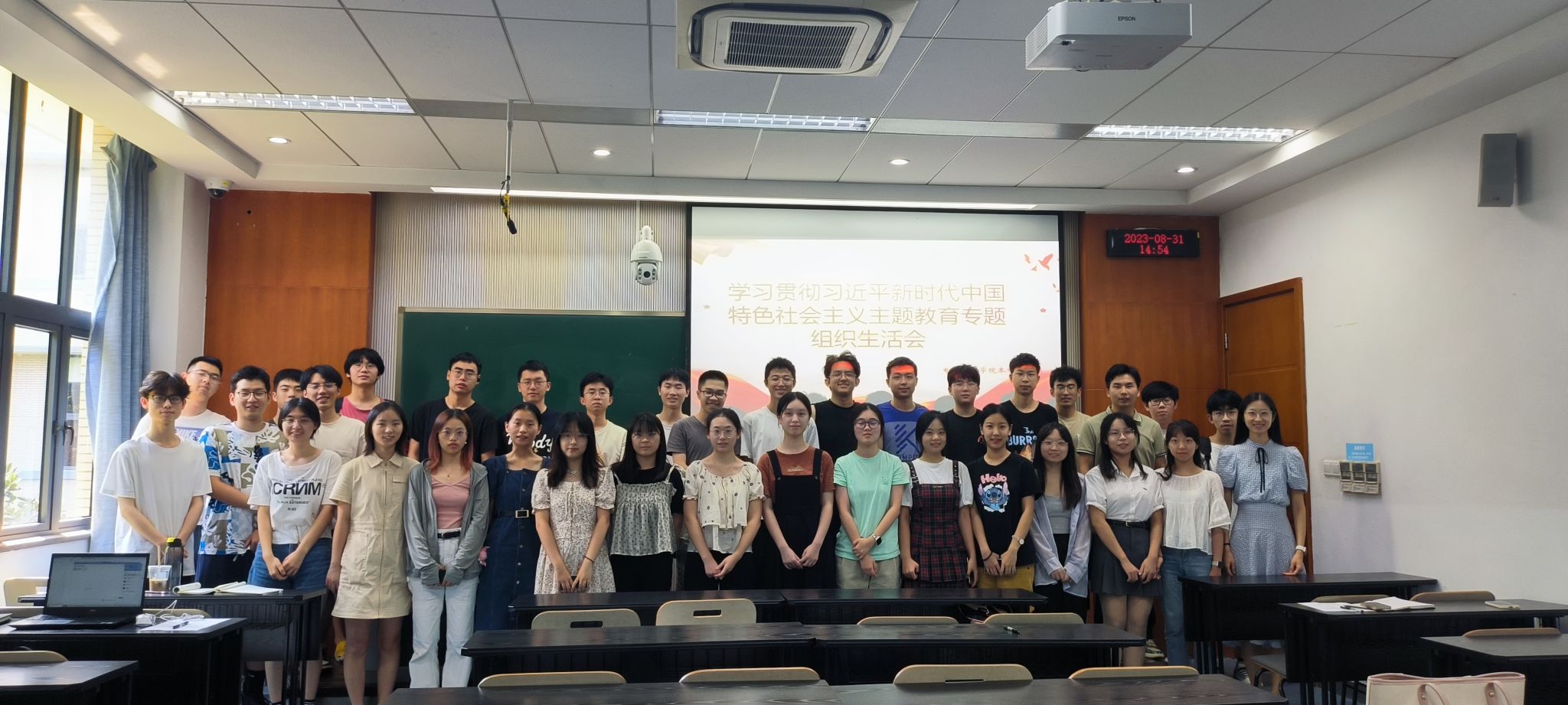本科生二支部于A8302教室开展了学习贯彻习近平新时代中国特色社会主义思想主题教育专题组织生活会,支部书记胡力方、年级辅导员穆峰及全体党员参会。