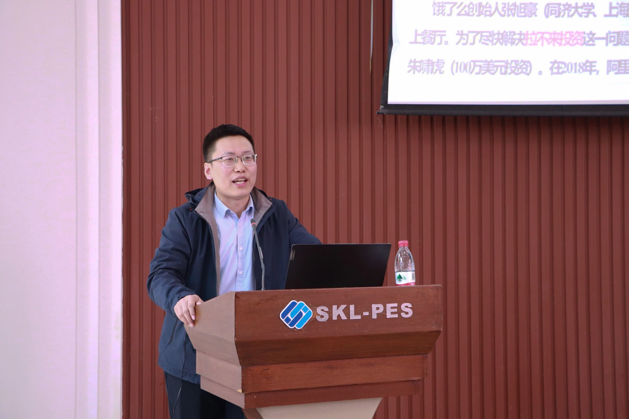 随后,王老师以拼多多创始人王峥、饿了么创始人张旭豪等初代大学生创客为引,展开此次讲座的3个部分:创新创业基本情况、创新创业重要竞赛及如何培育孵化优秀项目。