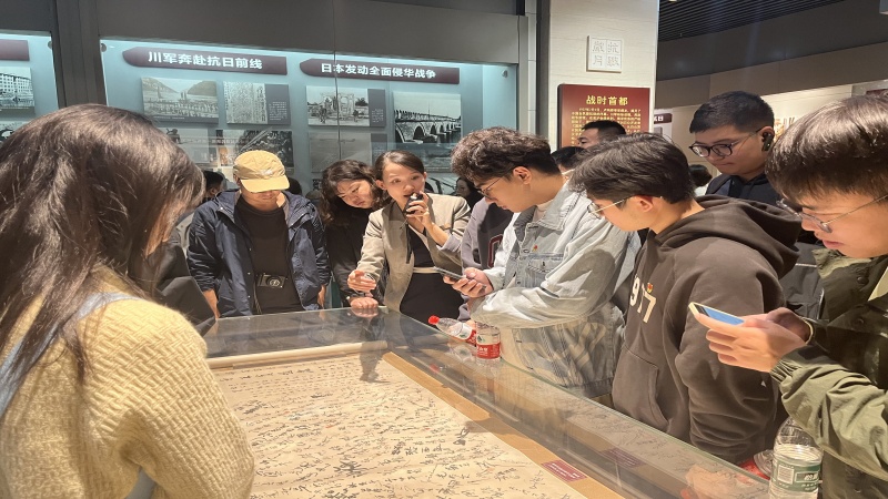 最后,大家来到《抗战岁月》展厅。抗战时期,重庆作为中国的战时陪都,为抗日战争和世界反法西斯战争的胜利作出了巨大的历史贡献。抗日战争是自鸦片战争以来,中华民族在反对帝国主义侵略斗争中所获得的第一次完全的胜利。在这场英勇不屈的反侵略战争中,重庆人民同全国各族人民,和世界爱好和平的人民一道,以其坚毅的勇气、惨烈的牺牲、卓绝的奋斗,谱写出了追求民族独立和人类正义的壮丽诗篇。在中国人民的抗战岁月中,形成了伟大的抗战精神,中国人民向世界展示了天下兴亡、匹夫有责的爱国情怀,视死如归、宁死不屈的民族气节,不畏强暴、血战到底的英雄气概,百折不挠、坚忍不拔的必胜信念。