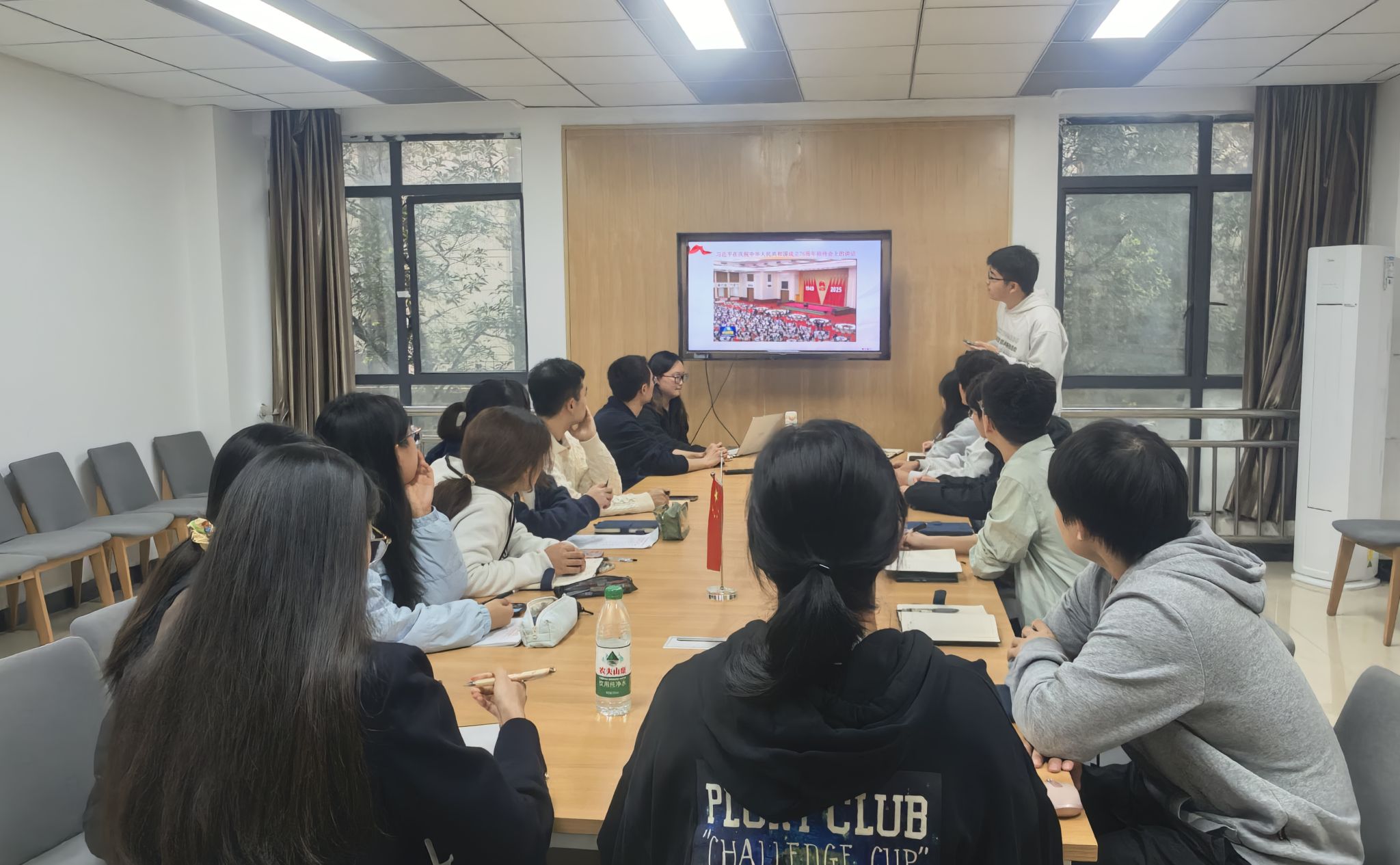 首先,孙煜博带领支部成员深入学习了二十届四中全会精神,系统解读了全会审议通过的关于制定国民经济和社会发展第十五个五年规划的建议。他强调,该时期是我国基本实现社会主义现代化夯实基础、全面发力的关键阶段,体现了党中央工作的连续性与战略远见,激励全体党员增强历史自觉,把握时代脉搏。