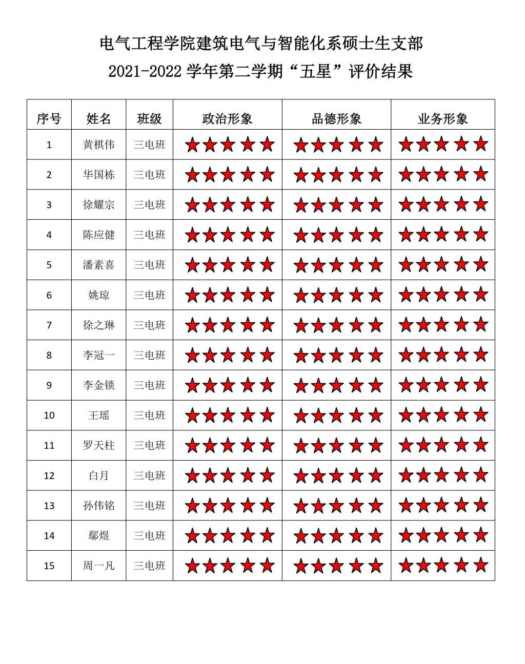 黄色动漫 建筑电气支部2021-2022学年第二学期“五星评价结果”