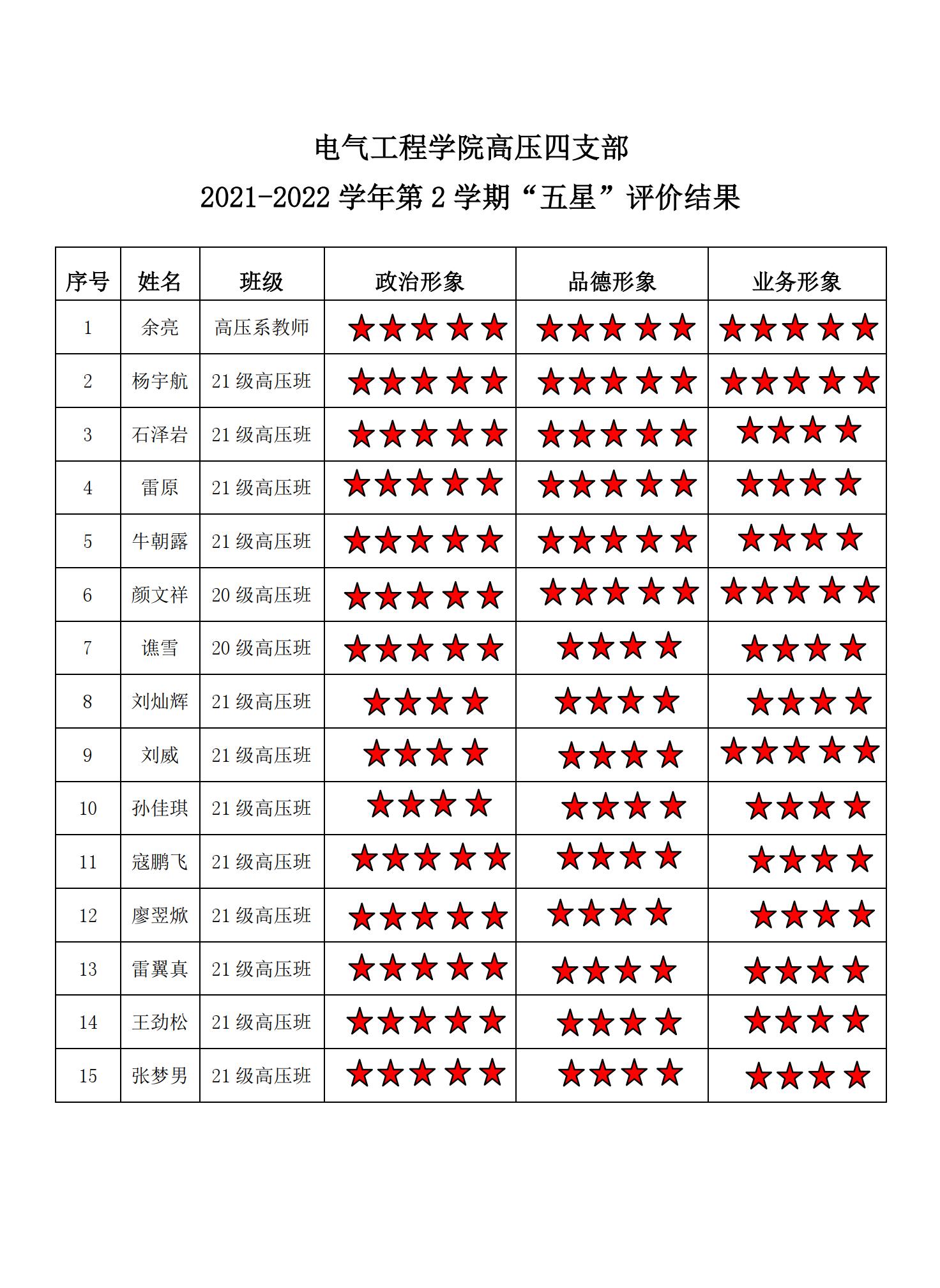 黄色动漫 高压一支部2021-2022学年第二学期“五星评价结果”