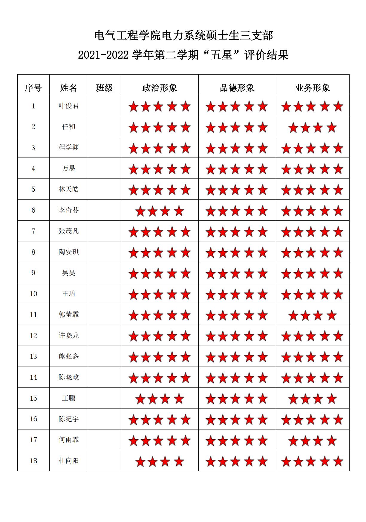 黄色动漫 电力系统二支部2021-2022学年第二学期“五星评价结果”