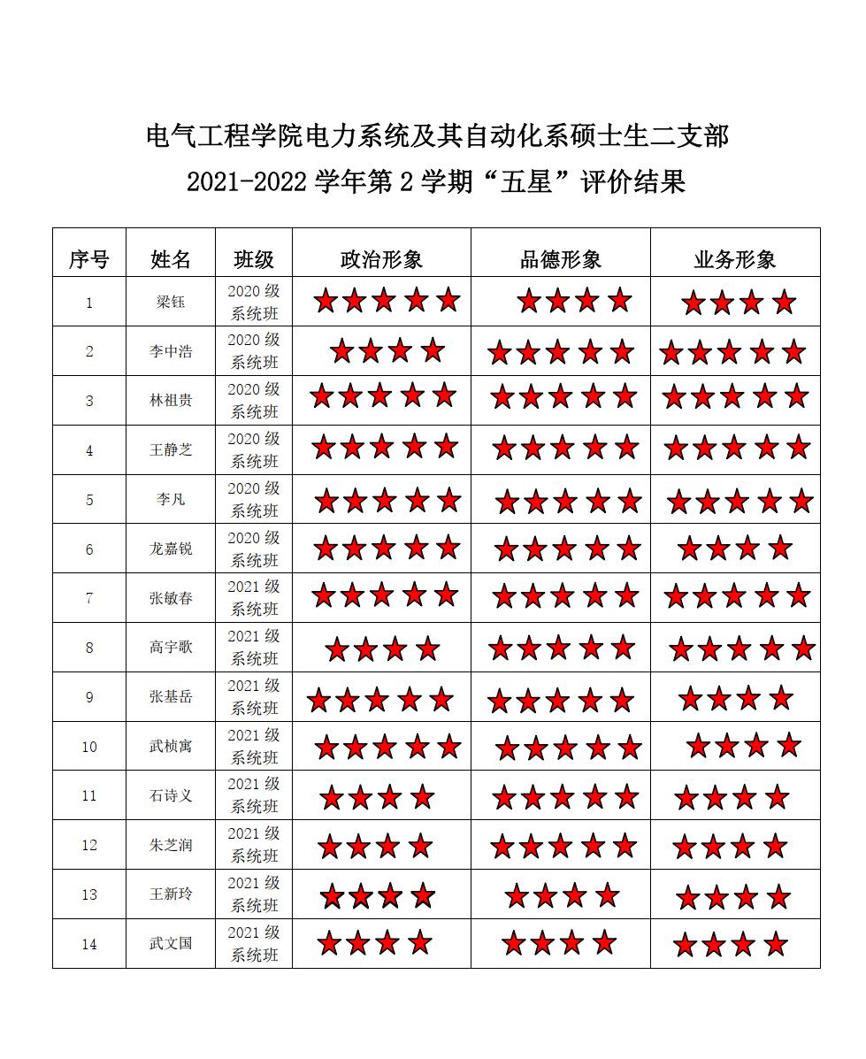 黄色动漫 电力系统二支部2021-2022学年第二学期“五星评价结果”