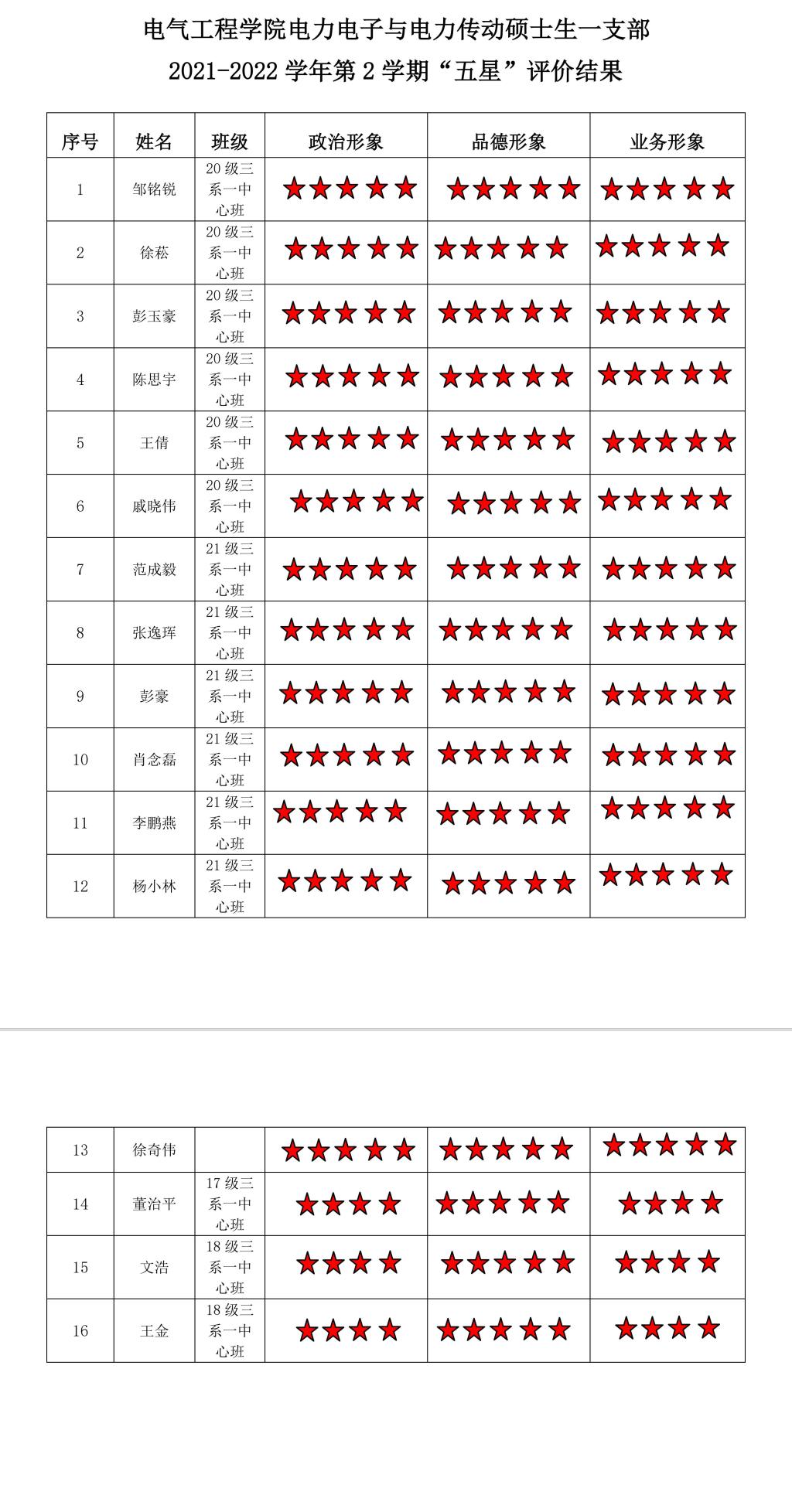 黄色动漫 电力电子一支部2021-2022学年第二学期“五星评价结果”