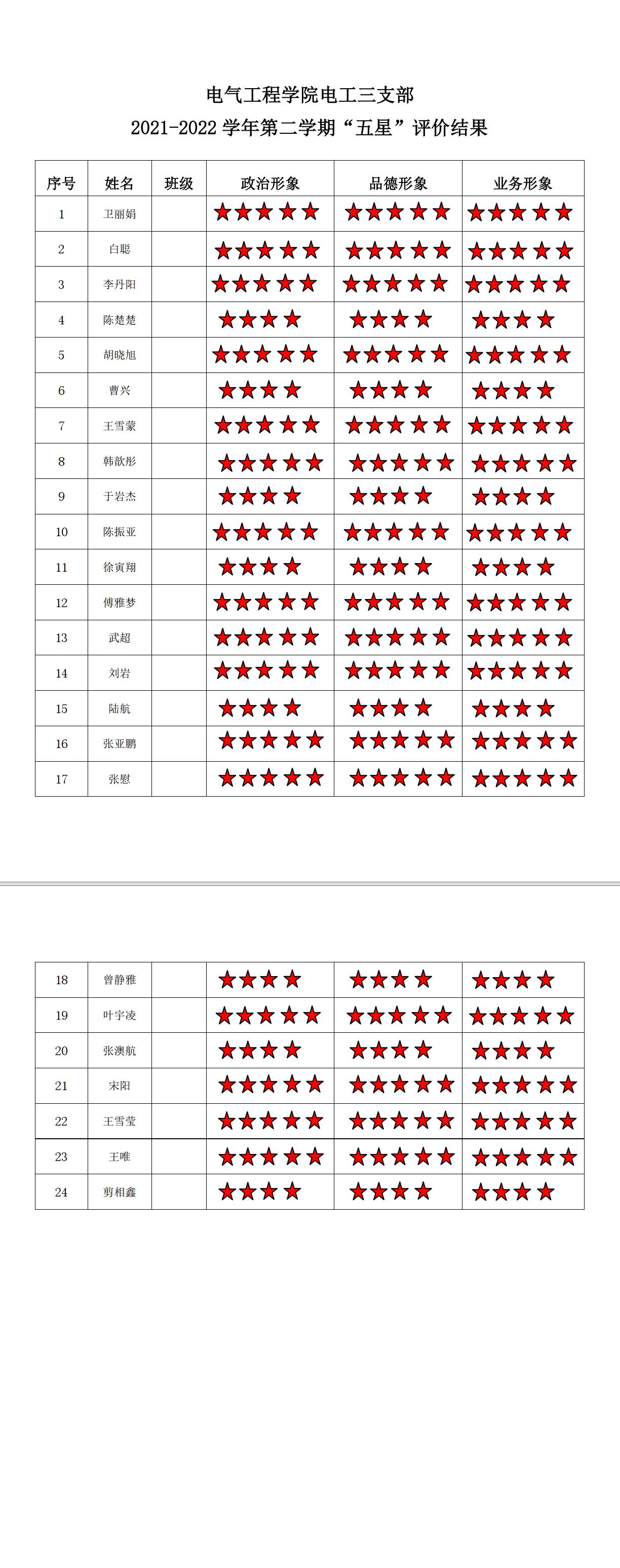 黄色动漫 电工二支部2021-2022学年第二学期“五星评价结果”