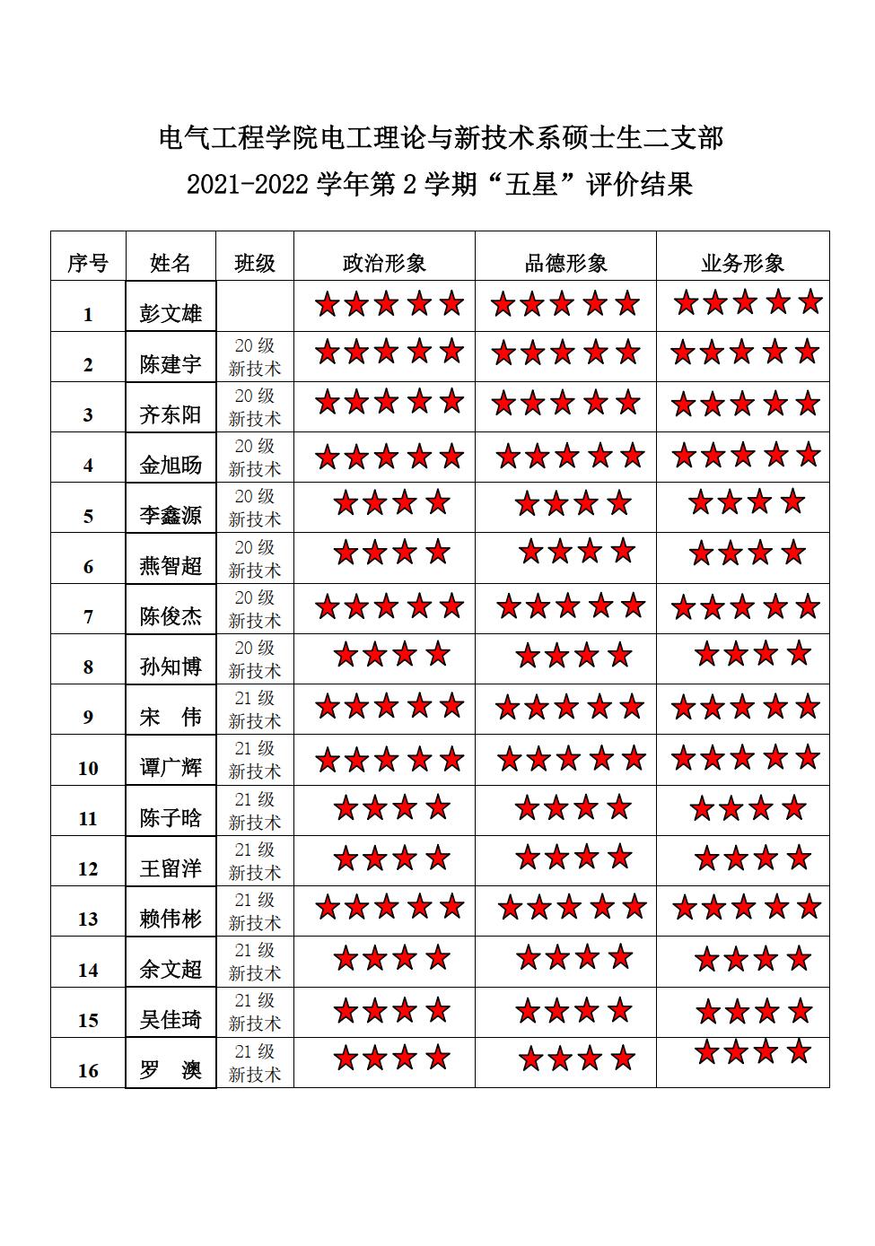 黄色动漫 博士生一支部2021-2022学年第二学期“五星评价结果”