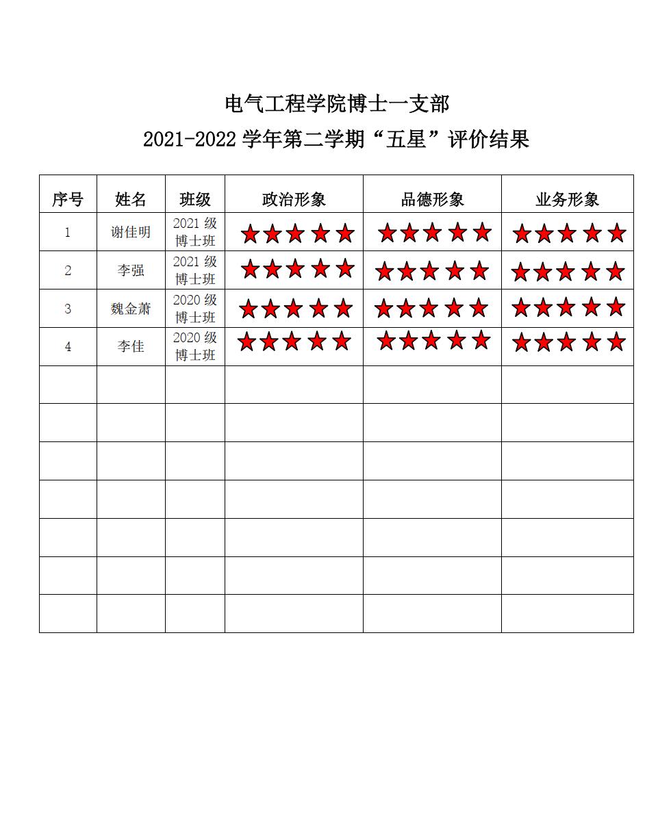黄色动漫 博士生一支部2021-2022学年第二学期“五星评价结果”