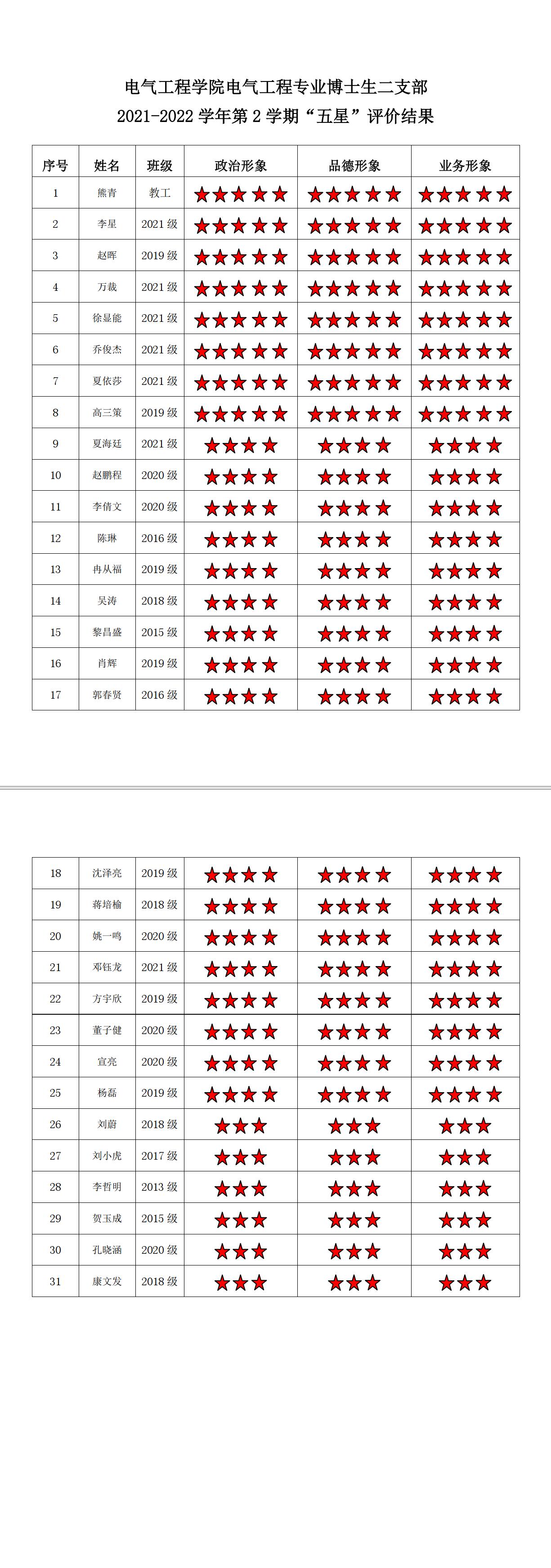 黄色动漫 博士生二支部2021-2022学年第二学期“五星评价结果”