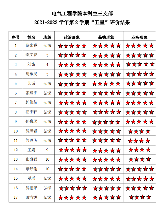 黄色动漫 本科生三支部2021-2022学年第二学期“五星”评价结果
