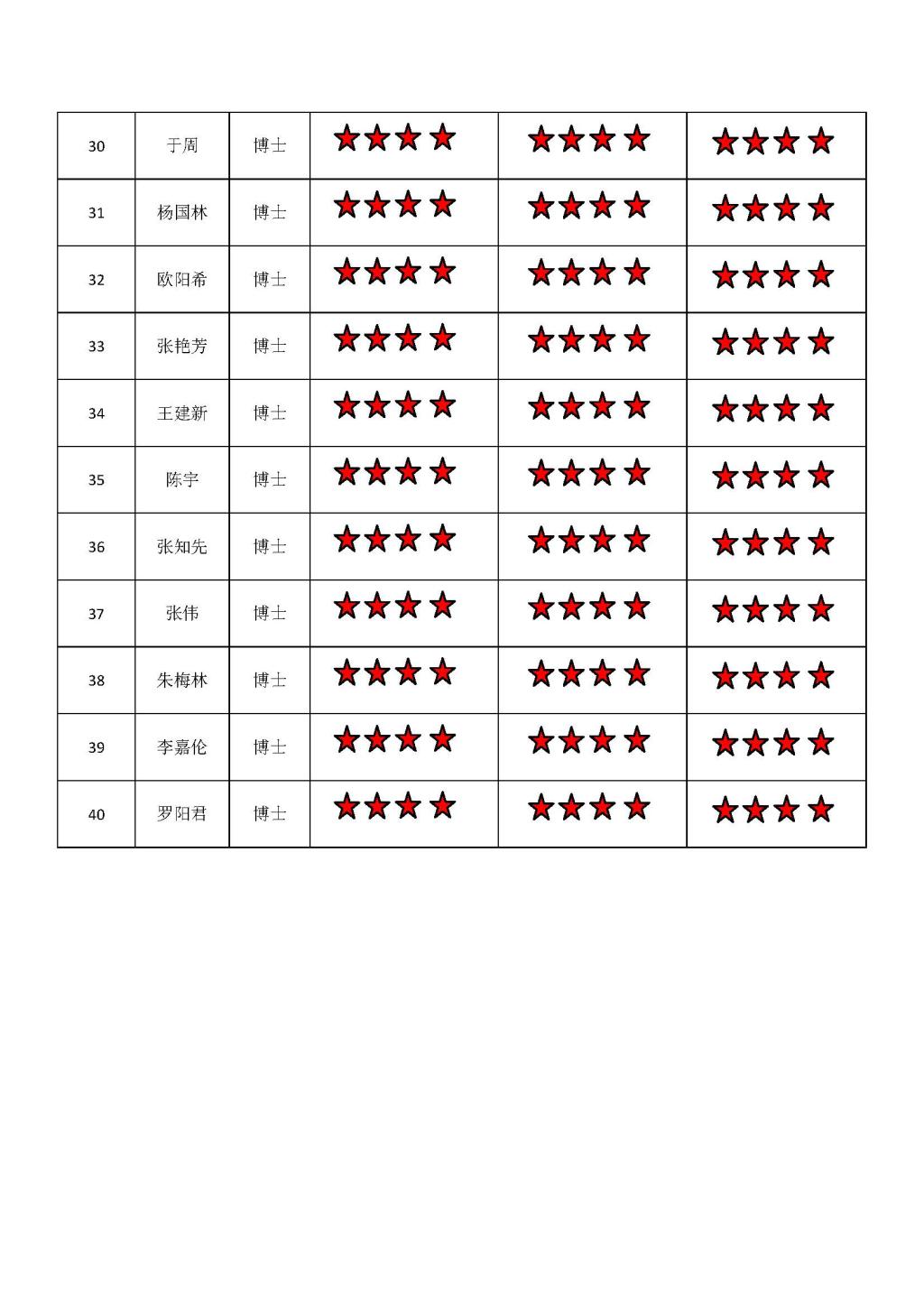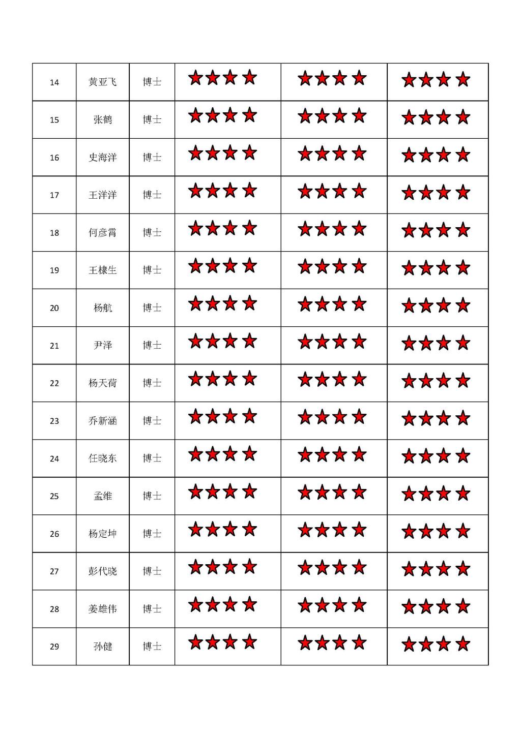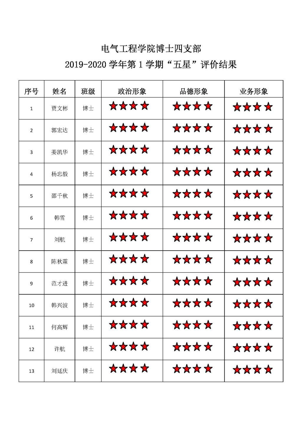 黄色动漫 博士四支部2019-2020学年第1学期“五星”评价结果