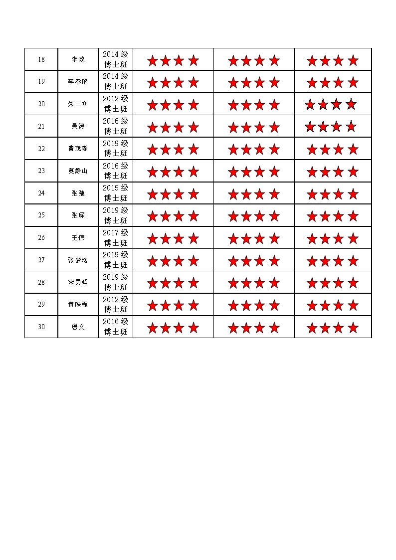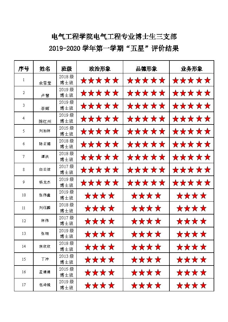 黄色动漫 博士二支部2019-2020学年第1学期“五星”评价结果