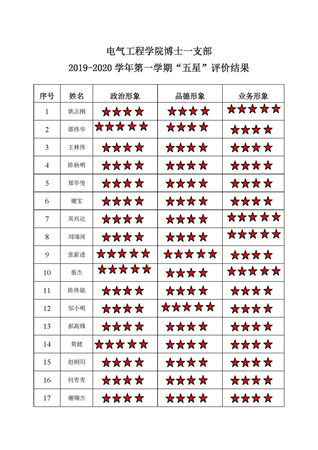 黄色动漫 博士二支部2019-2020学年第1学期“五星”评价结果