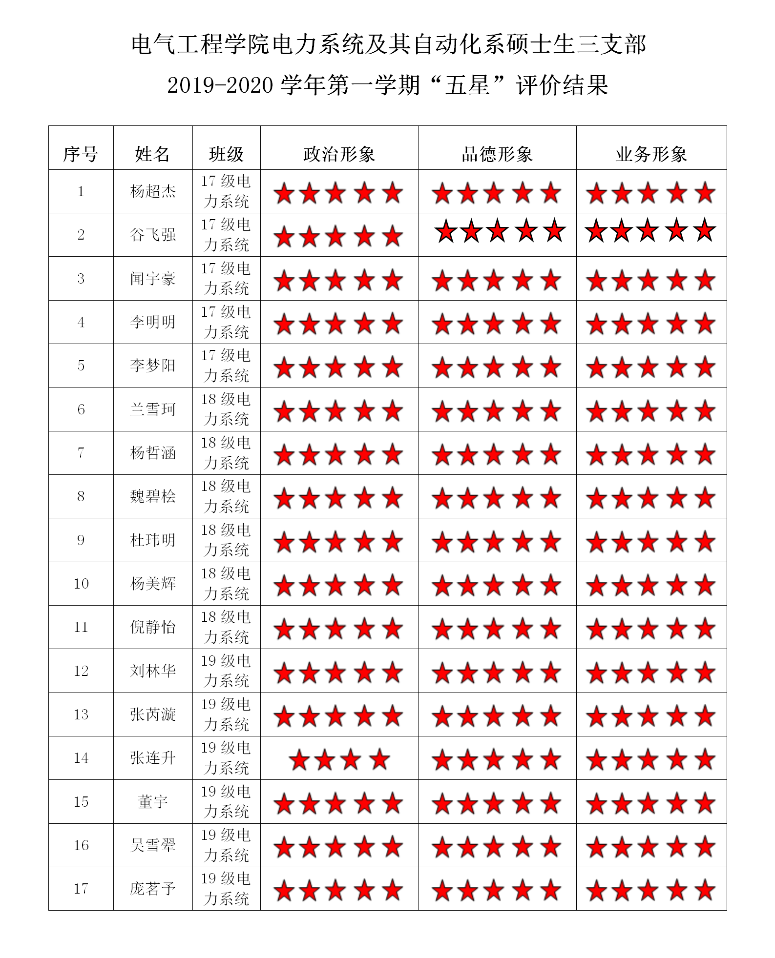 黄色动漫 电力系统及其自动化系硕士第一支部 2019-2020学年第1学期“五星”评价结果