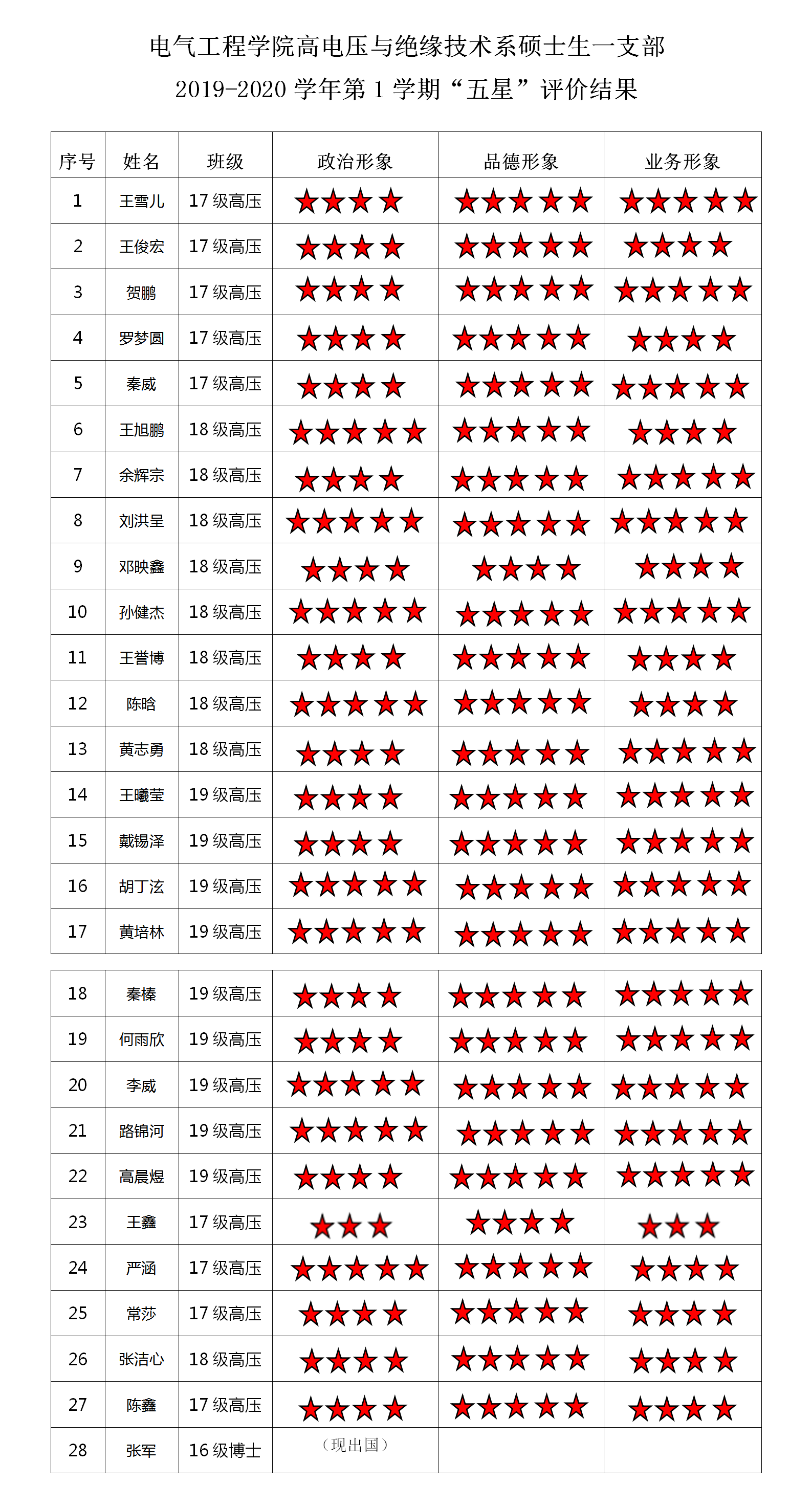 黄色动漫 建筑电气与智能化系硕士支部 2019-2020学年第1学期“五星”评价结果