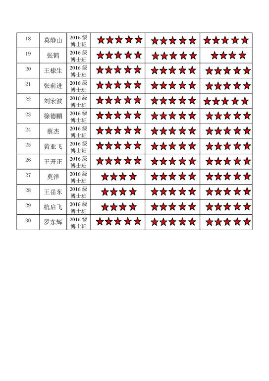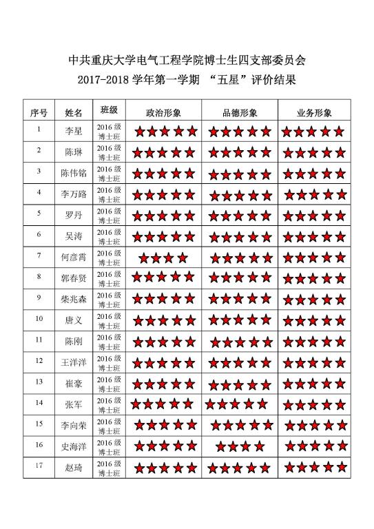 中共黄色动漫 博士生三支部委员会 2017-2018学年第一学期 “五星”评价结果