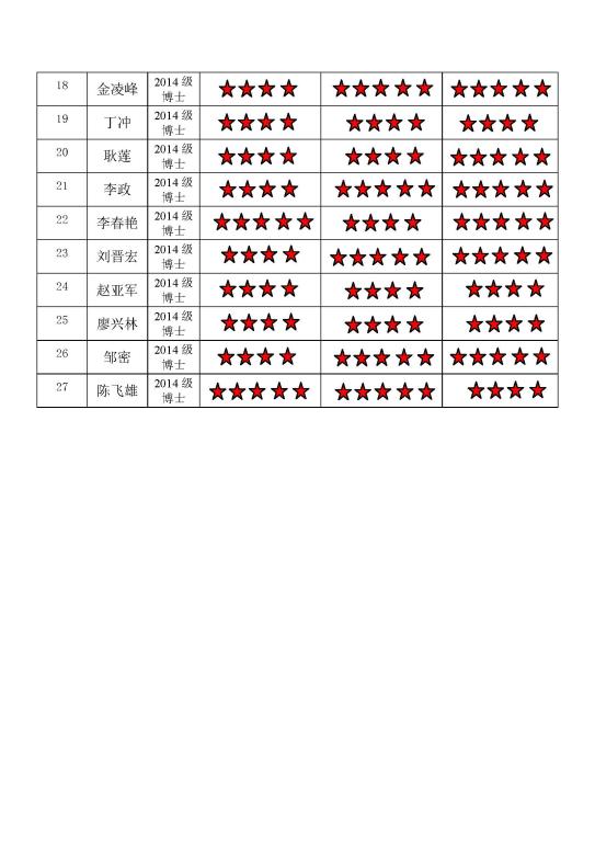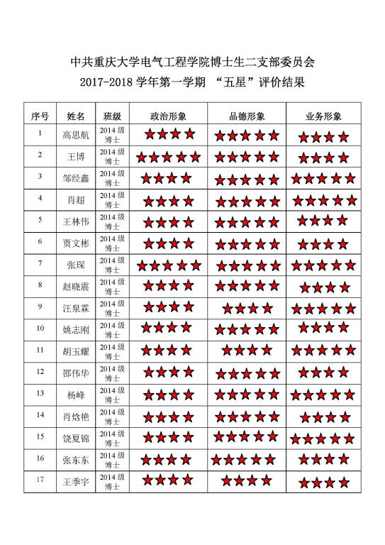 中共黄色动漫 博士生三支部委员会 2017-2018学年第一学期 “五星”评价结果
