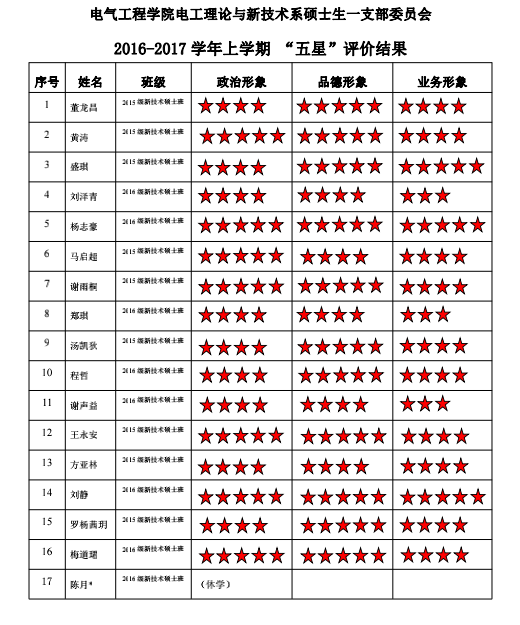 中共黄色动漫 电工理论与新技术系硕士生二支部委员会2017-2018学年 “五星”评价结果