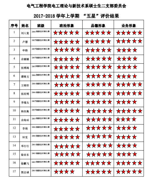 中共黄色动漫 电工理论与新技术系硕士生二支部委员会2017-2018学年 “五星”评价结果