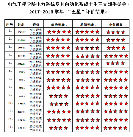 中共黄色动漫 电力系统及其自动化系硕士生三支部委员会2017-2018学年 “五星”评价结果