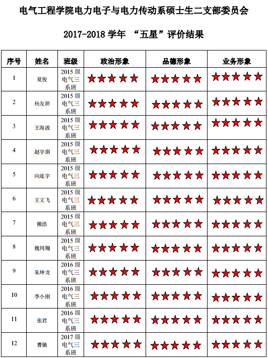 中共黄色动漫 电力电子与电气传动硕士生二支部委员会2017-2018学年 “五星”评价结果